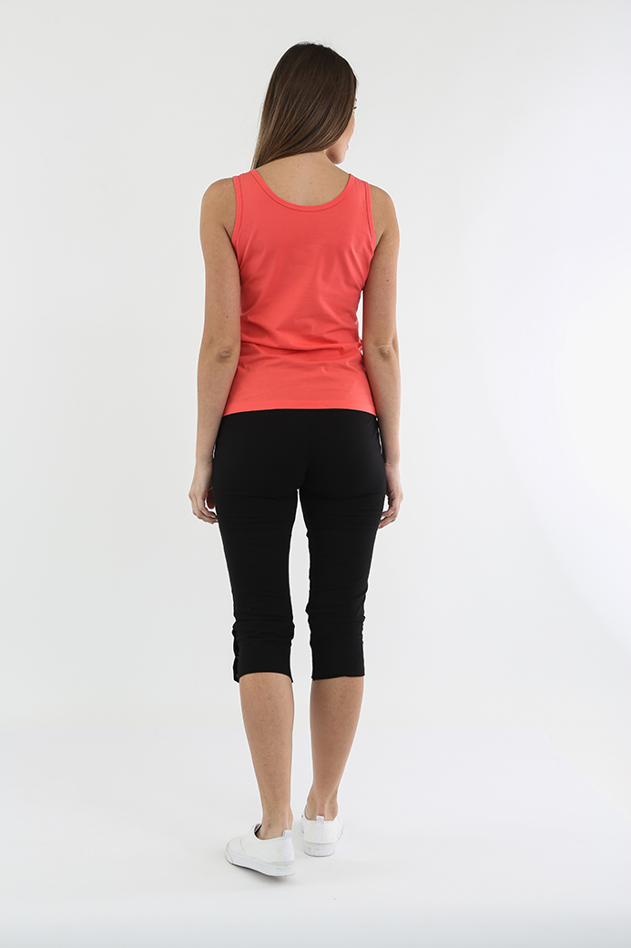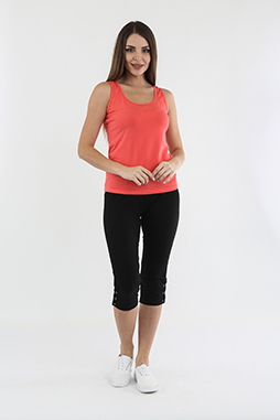 Трикотажные малообъёмные бриджи длиной до середины икры. Модель прямого покроя слегка заужена книзу. По низу – широкие притачные манжеты с застёжкой на 3 кнопки. Пояс - на резинке.