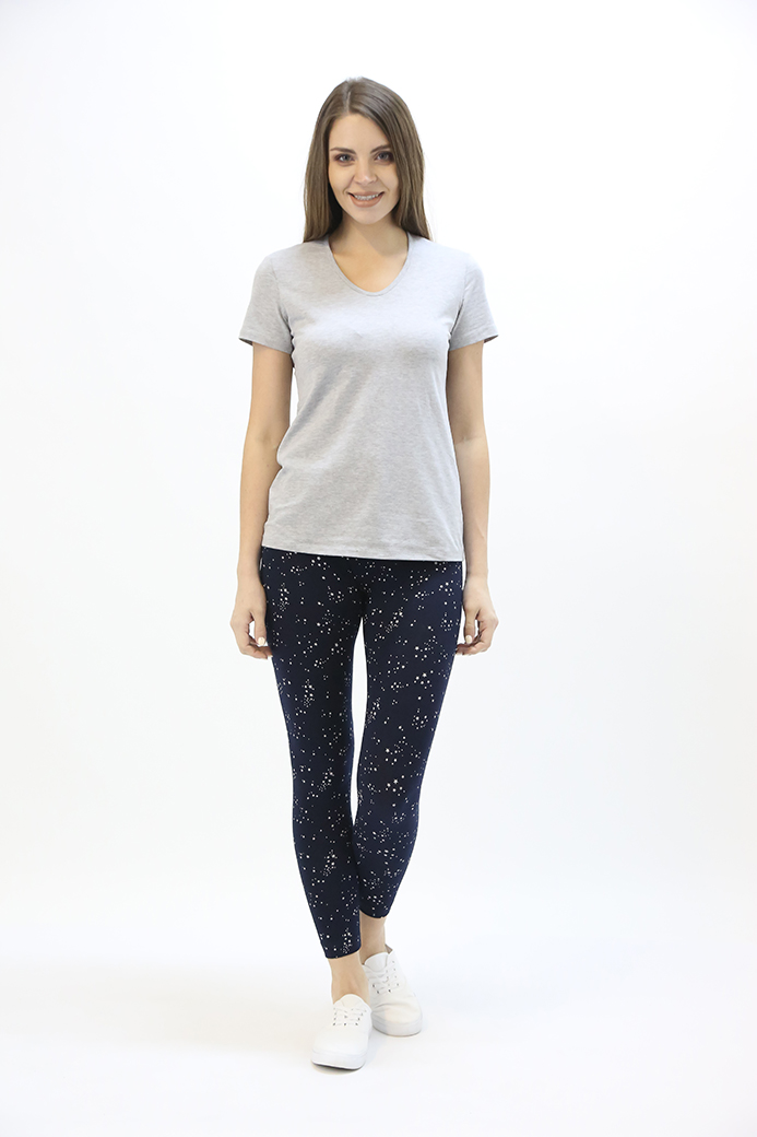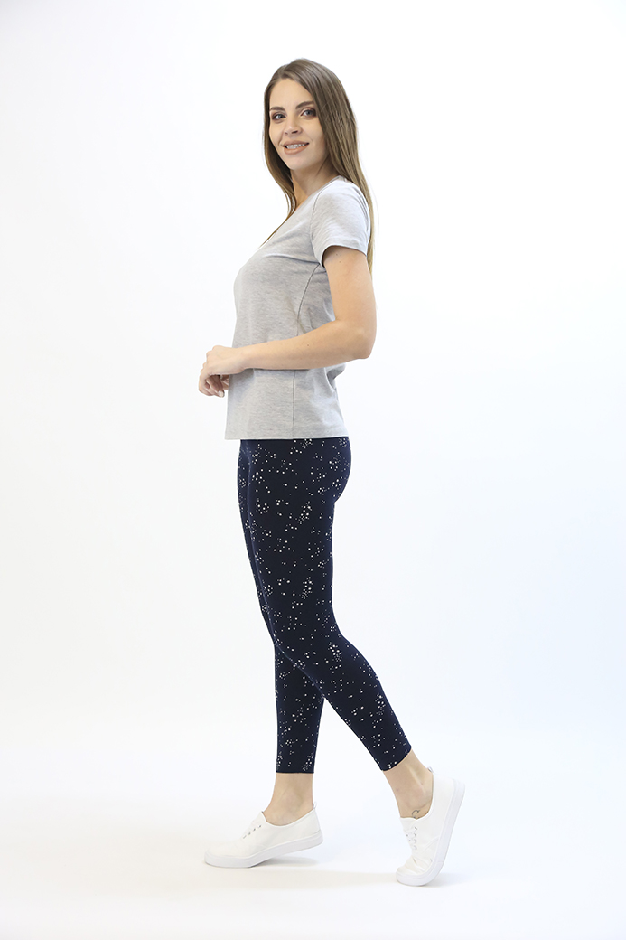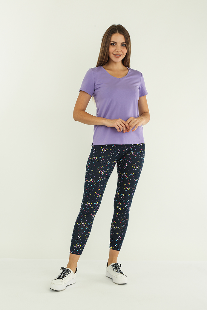 Длинные классические лосины облегающего кроя, выполненные из эластичного набивного трикотажного полотна с хлопком. Лосины с удобной средней посадкой.