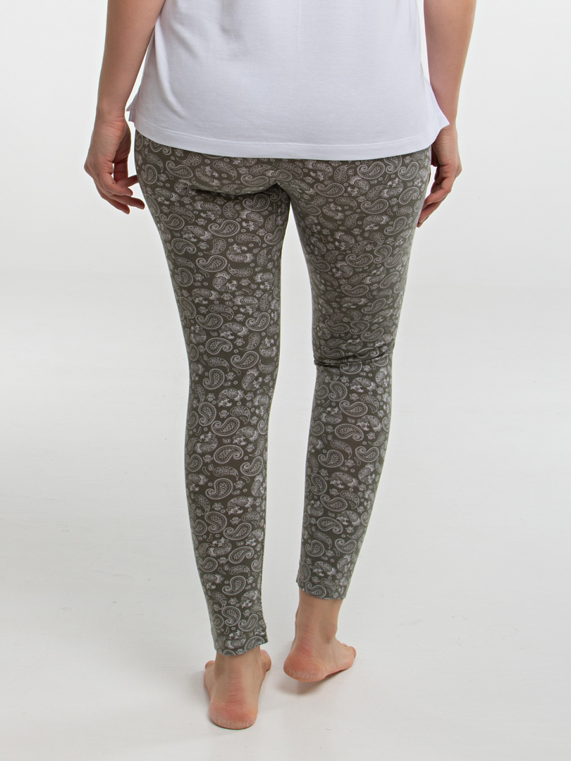 Длинные классические лосины облегающего кроя, выполненные из эластичного набивного трикотажного полотна с хлопком. Лосины с удобной средней посадкой.