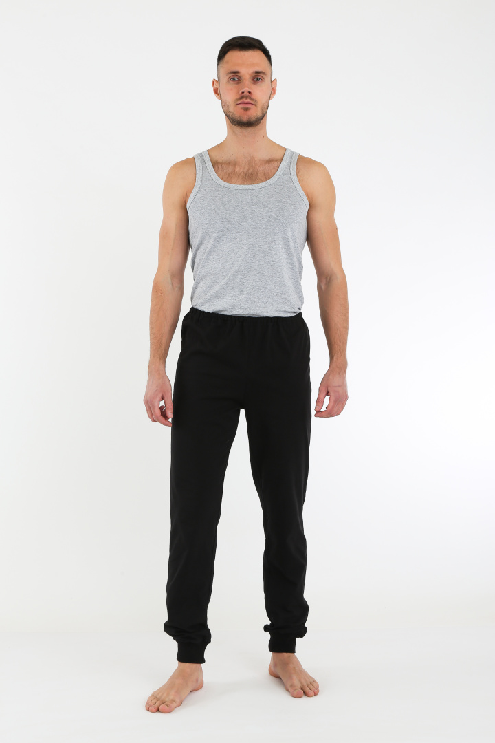 Тонкие брюки - кальсоны из хлопкового трикотажа на манжете. Классический малообъёмный прямой покрой. Подходит для использования в качестве нательного белья в холодную погоду.