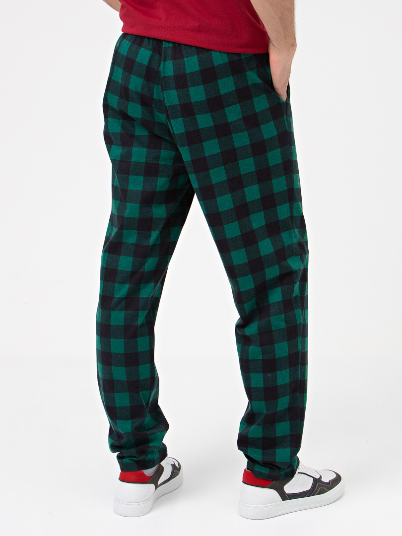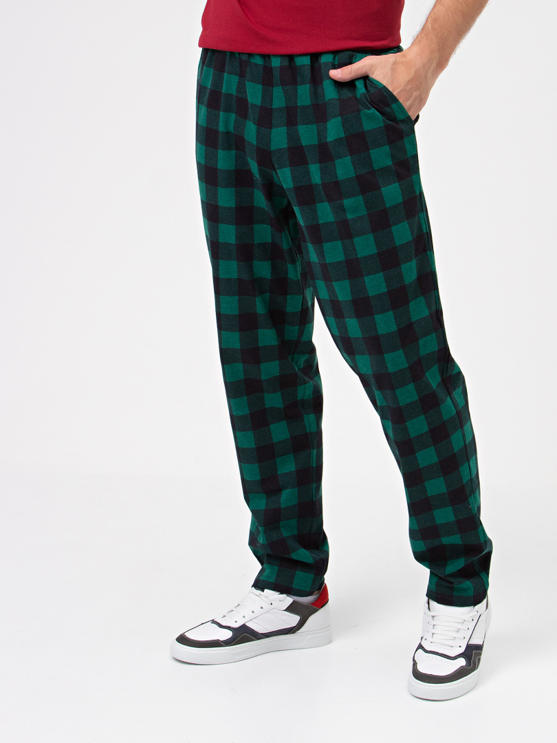 Длинные брюки из хлопкового трикотажа. Модель прямого покроя, слегка зауженная книзу. Притачной пояс с широкой резинкой. На передних половинках боковые карманы с наклонным входом.