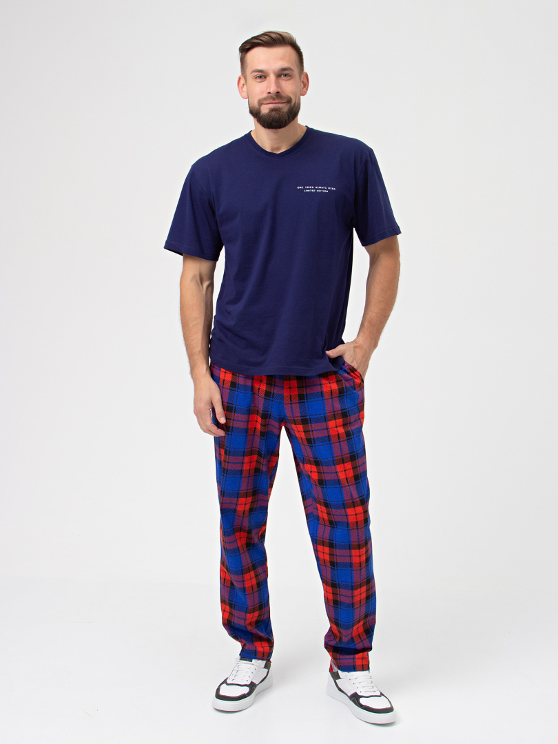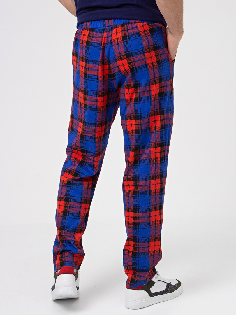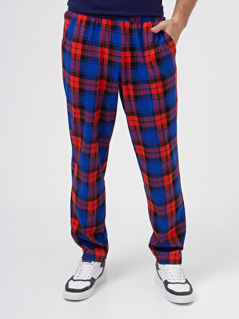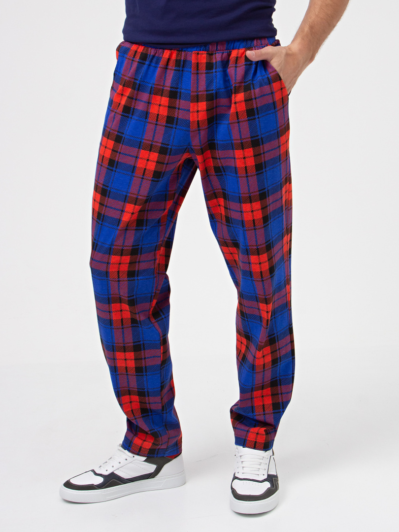 Длинные брюки из хлопкового трикотажа. Модель прямого покроя, слегка зауженная книзу. Притачной пояс с широкой резинкой. На передних половинках боковые карманы с наклонным входом.