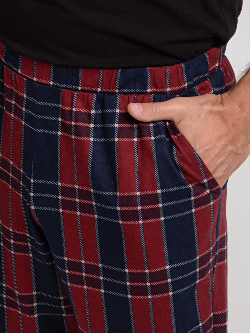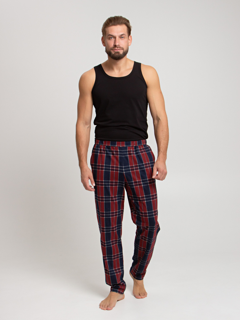 Длинные брюки из хлопкового трикотажа. Модель прямого покроя, слегка зауженная книзу. Притачной пояс с широкой резинкой. На передних половинках боковые карманы с наклонным входом.