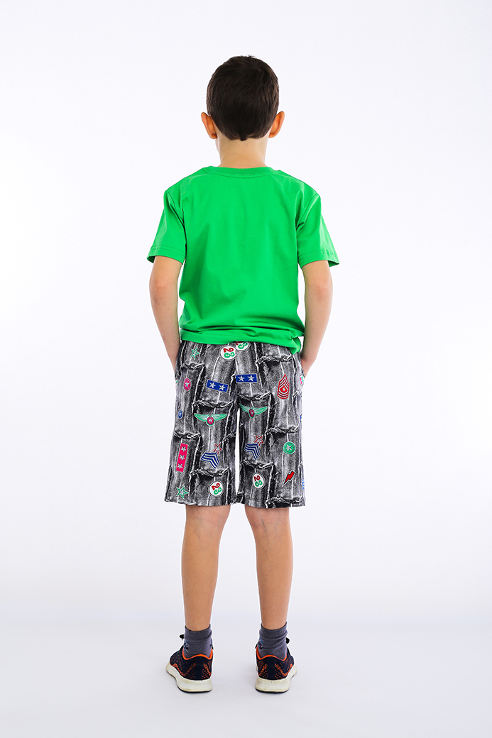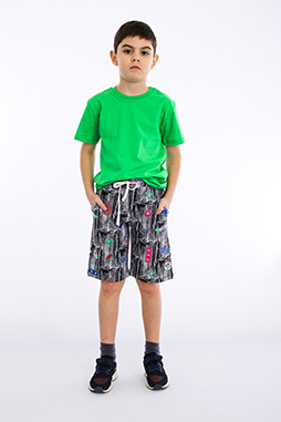 Шорты длиной до колена, выполненные из лёгкого хлопкового трикотажного полотна. Модель с удобной средней посадкой. Пояс на широкой резине со шнуром. На передних половинках боковые карманы с прямым входом.