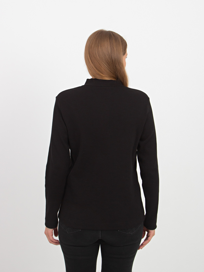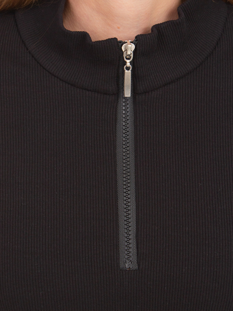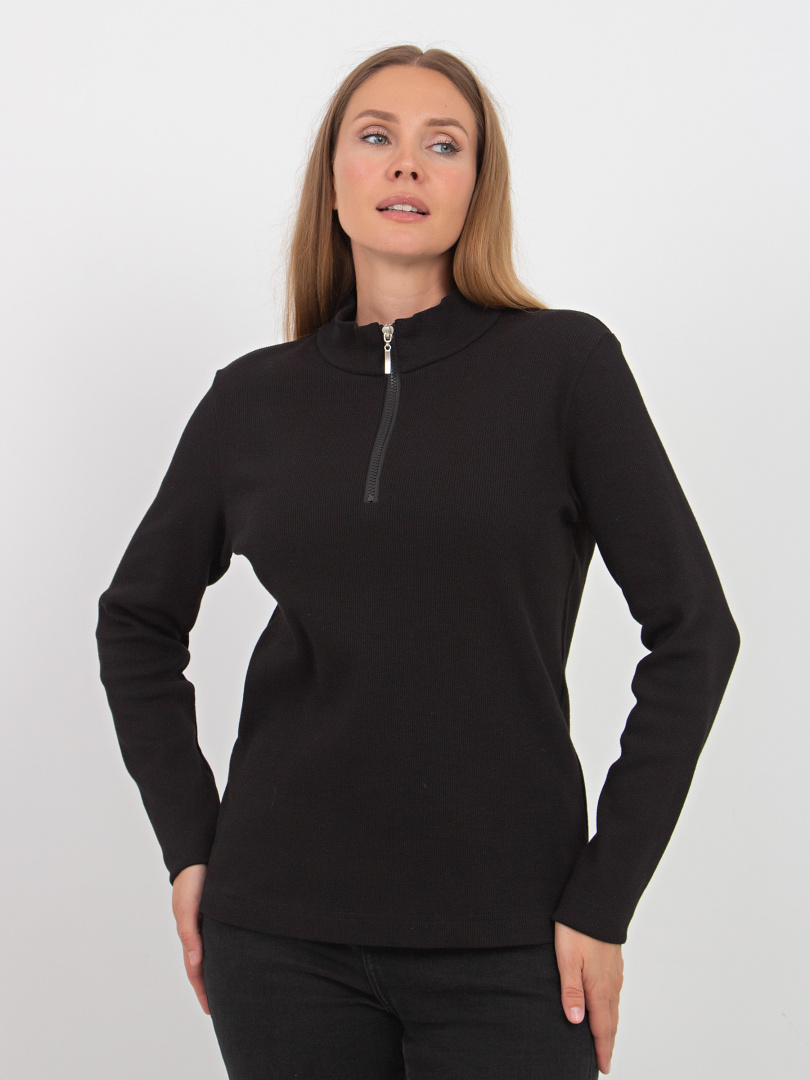 Джемпер прямого силуэта из эластичного трикотажа. Рукав длинный. По переду и воротнику – молния. Воротник-стойка.