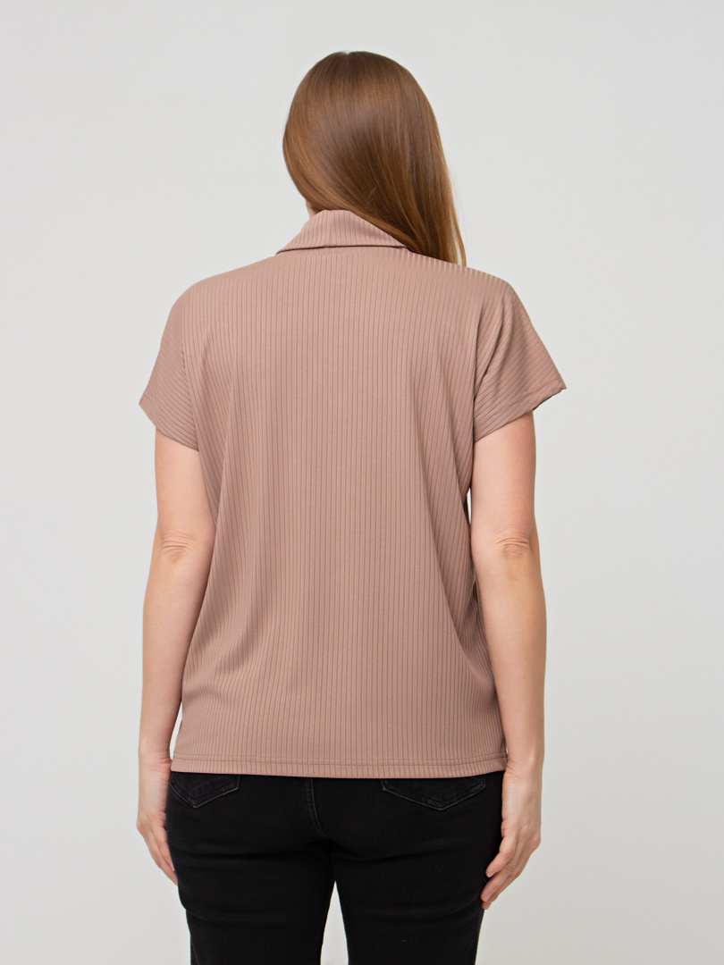 Джемпер прямого силуэта из трикотажа с рукавом кимоно. Модель средней длины. Горловина имеет растяжимый воротник-стойку.