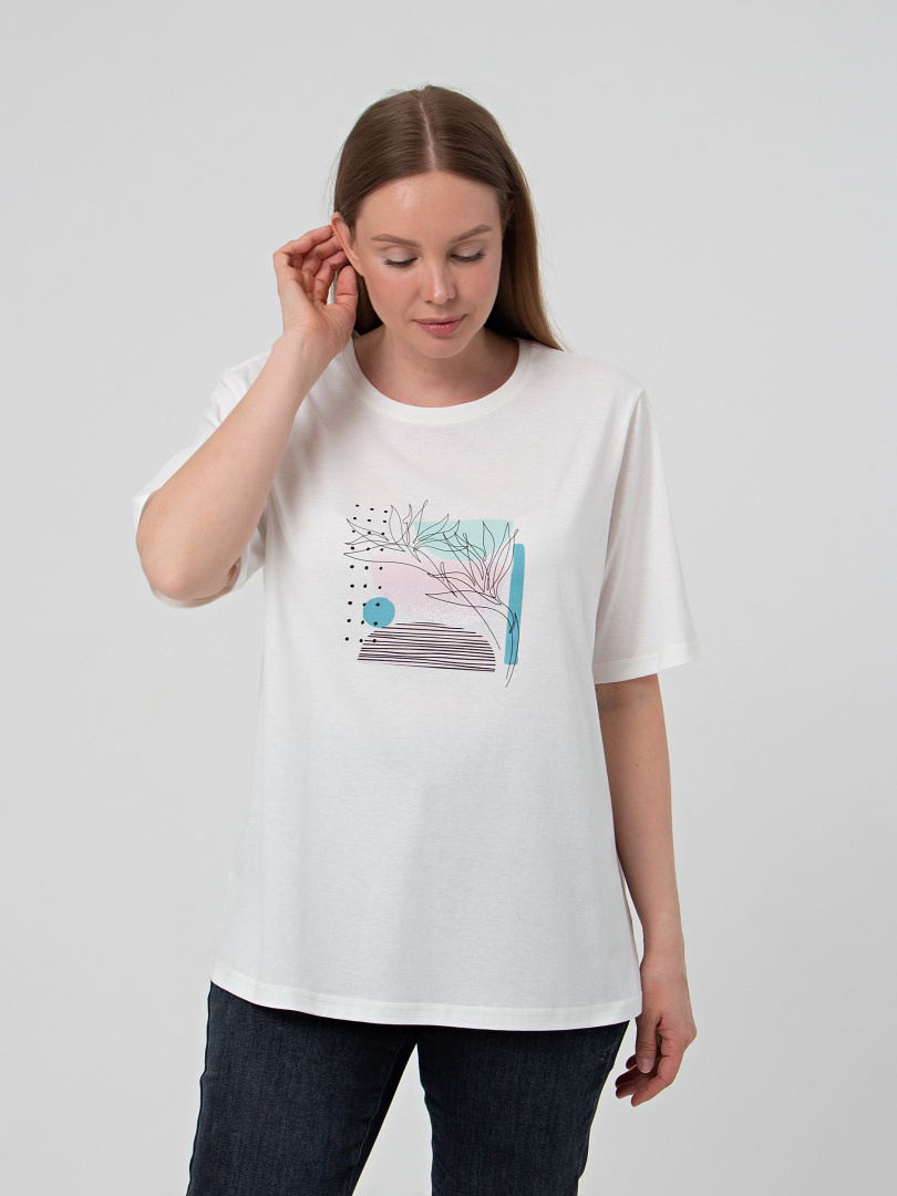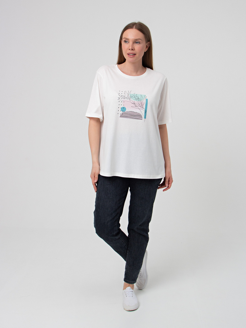 Блуза средней длины выполнена из хлопкового трикотажа. Покрой прямой объёмный. Рукава втачные прямые. Вырез круглый. Отличный вариант на каждый день.