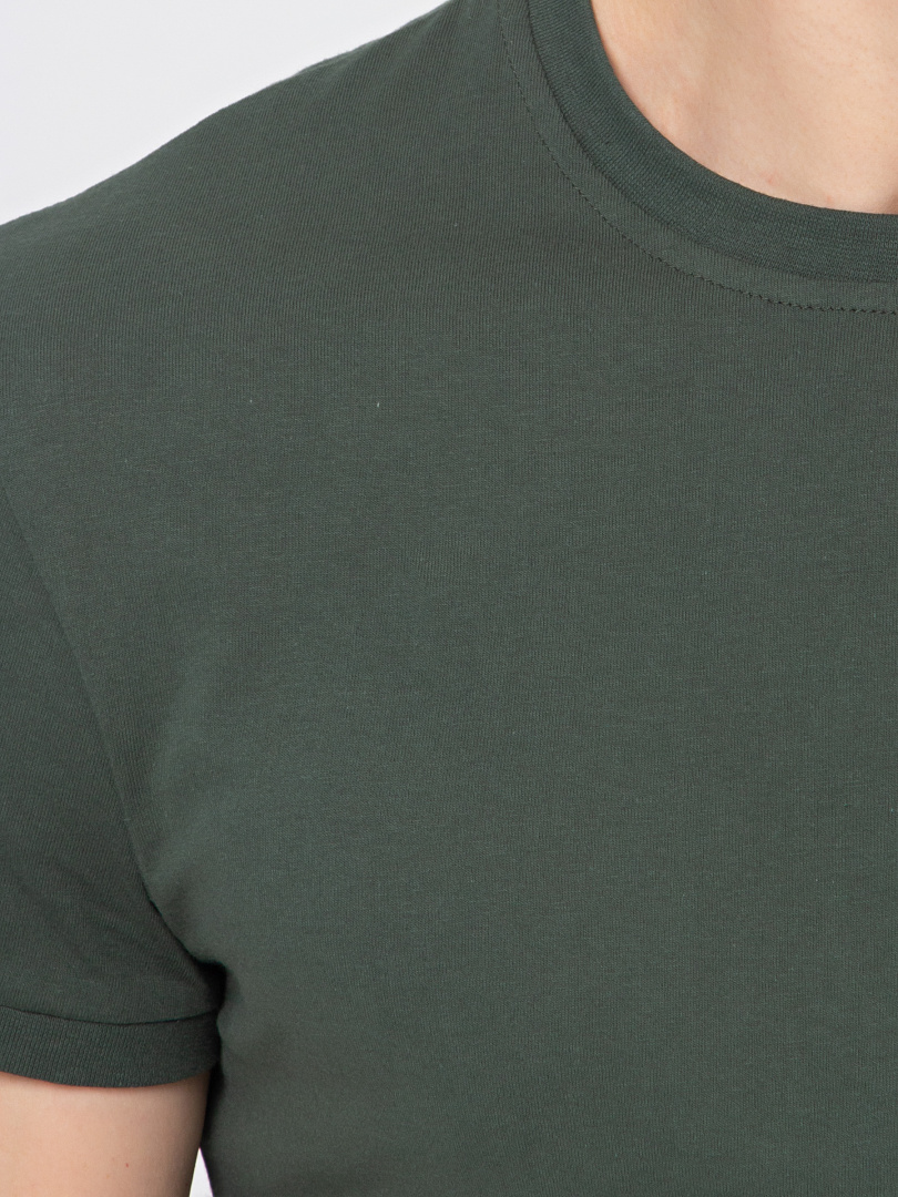 Футболка прямого покроя с круглым вырезом горловины. Базовая модель на каждый день. Модель дополнена нагрудным карманом. По низу рукава - манжеты.