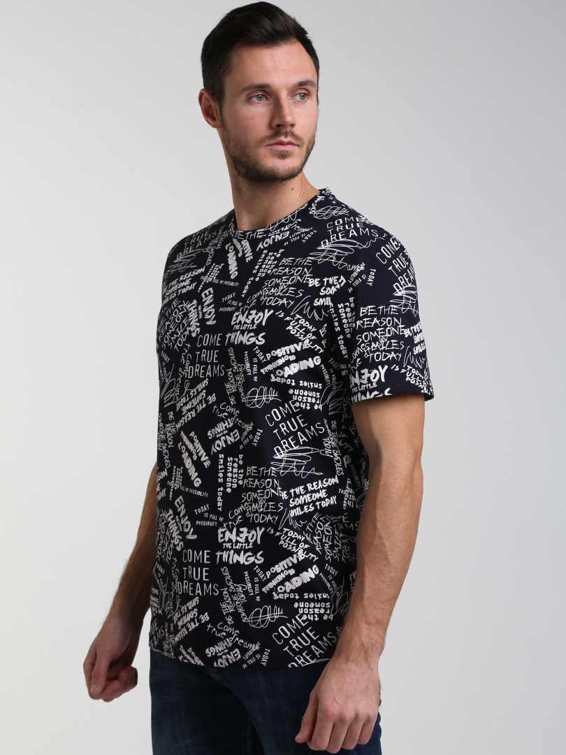 Мужская футболка из 100% хлопка прямого кроя. Выполнена из трикотажного полотна с рисунком.