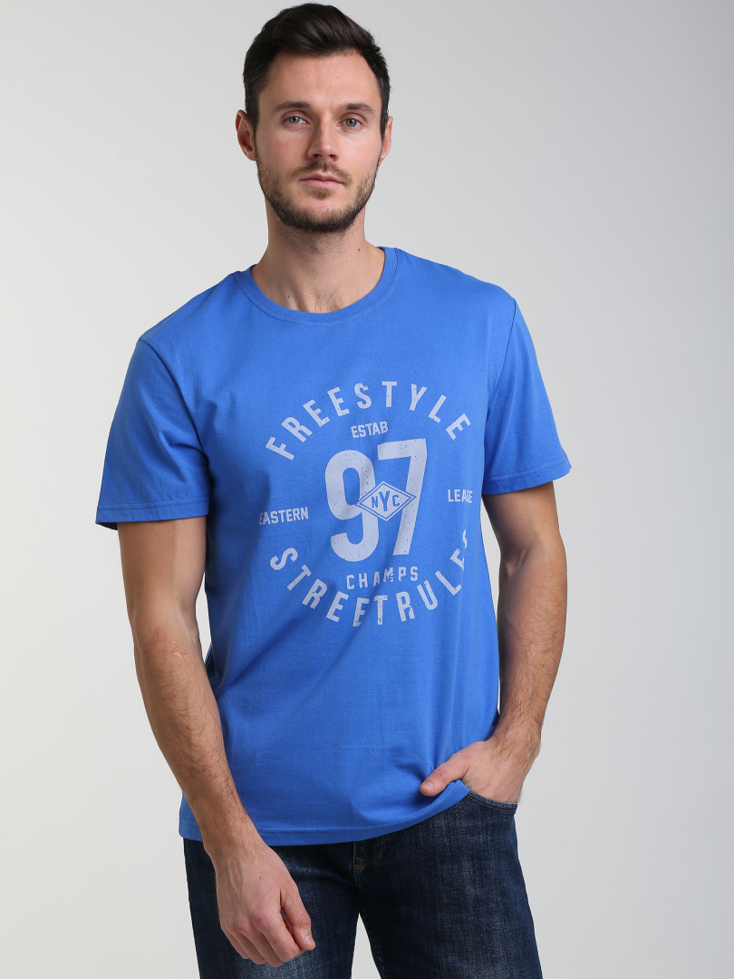Футболка прямого покроя с круглым вырезом. Модель дополнена декоративной печатью. Большие размеры.