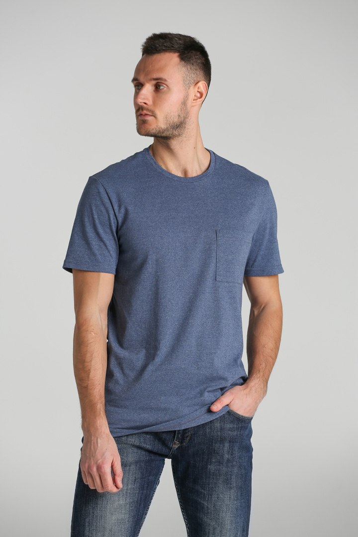 Футболка прямого покроя с круглым вырезом. Модель дополнена нагрудным карманом. Большие размеры.