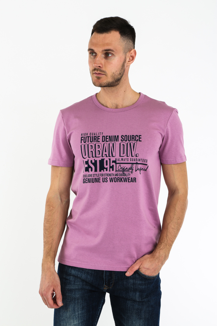 Футболка прямого покроя с круглым вырезом горловины. Базовая модель на каждый день. Перед декорирован принтом.