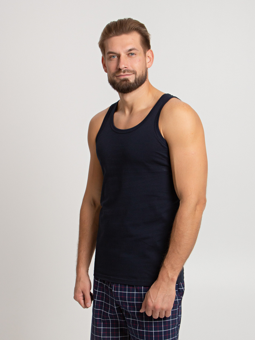 Классическая мужская майка с круглым вырезом горловины. Модель для повседневной носки из натурального дышащего полотна.
