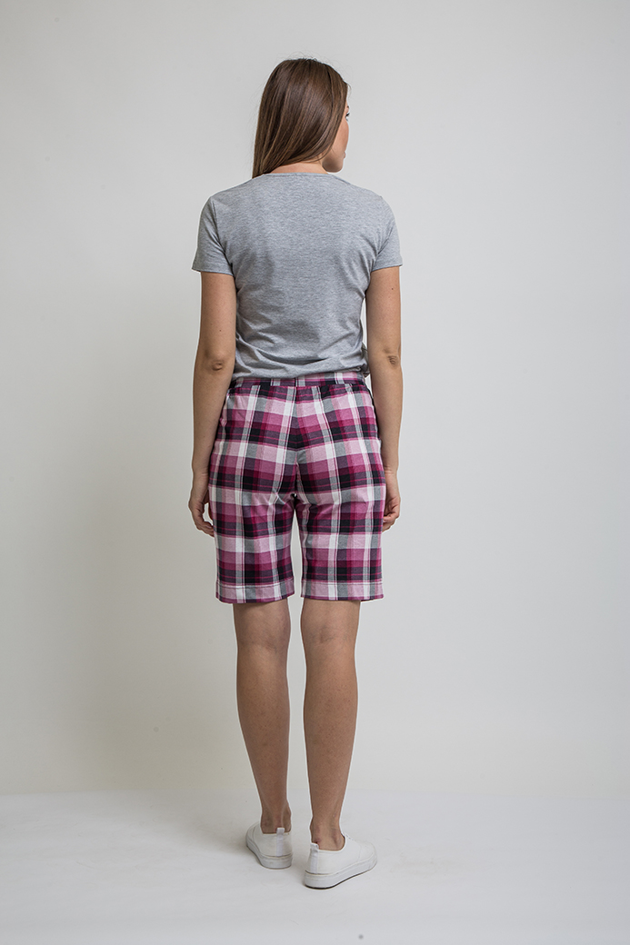 Шорты длиной до колена, выполненные из лёгкого хлопкового трикотажного полотна. Модель с удобной средней посадкой. Пояс на широкой резине со шнуром. На передних половинках боковые карманы с полукруглым входом.