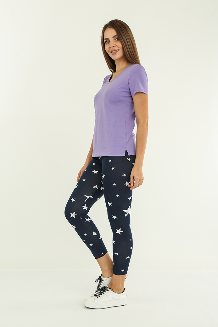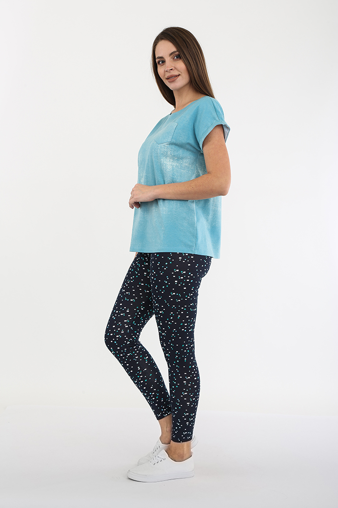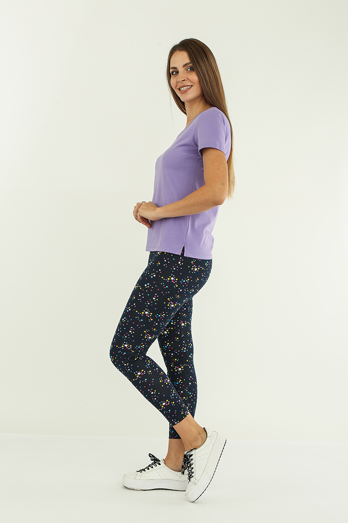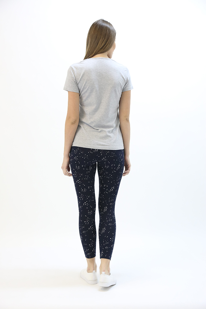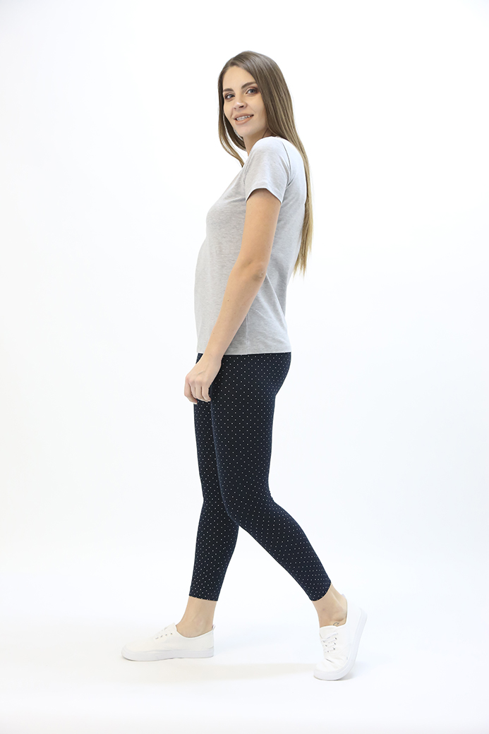 Длинные классические лосины облегающего кроя, выполненные из эластичного набивного трикотажного полотна с хлопком. Лосины с удобной средней посадкой.