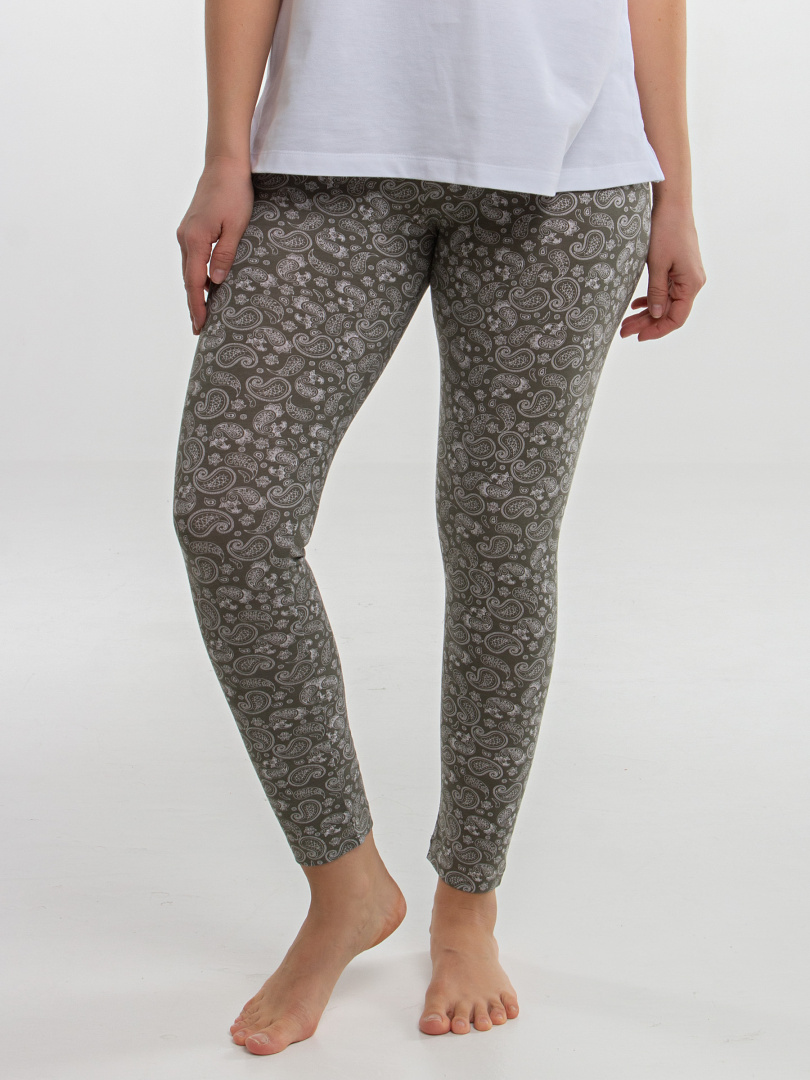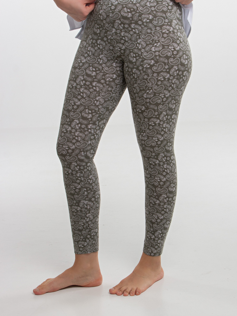 Длинные классические лосины облегающего кроя, выполненные из эластичного набивного трикотажного полотна с хлопком. Лосины с удобной средней посадкой.