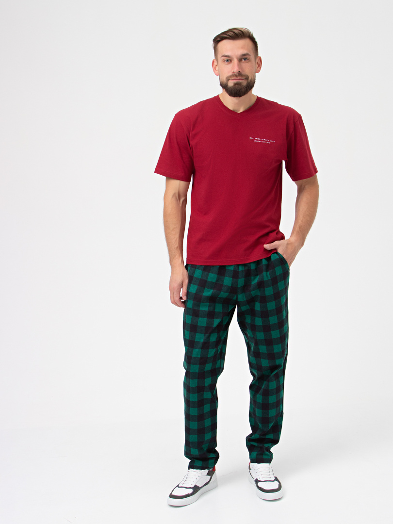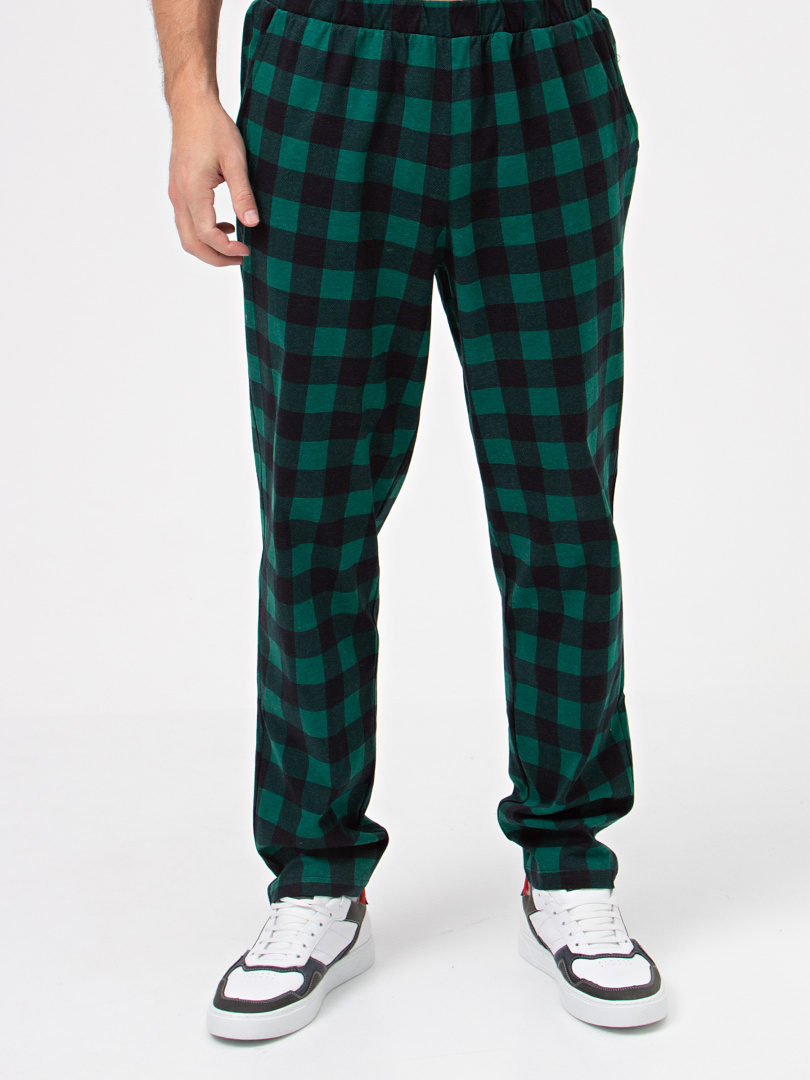 Длинные брюки из хлопкового трикотажа. Модель прямого покроя, слегка зауженная книзу. Притачной пояс с широкой резинкой. На передних половинках боковые карманы с наклонным входом.