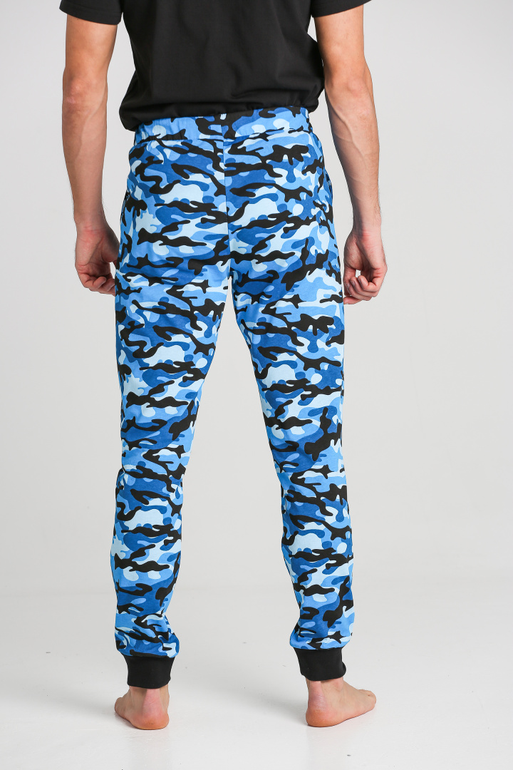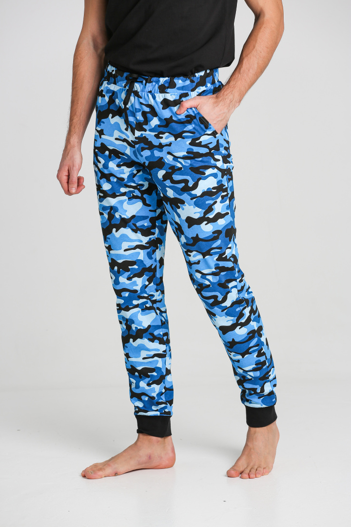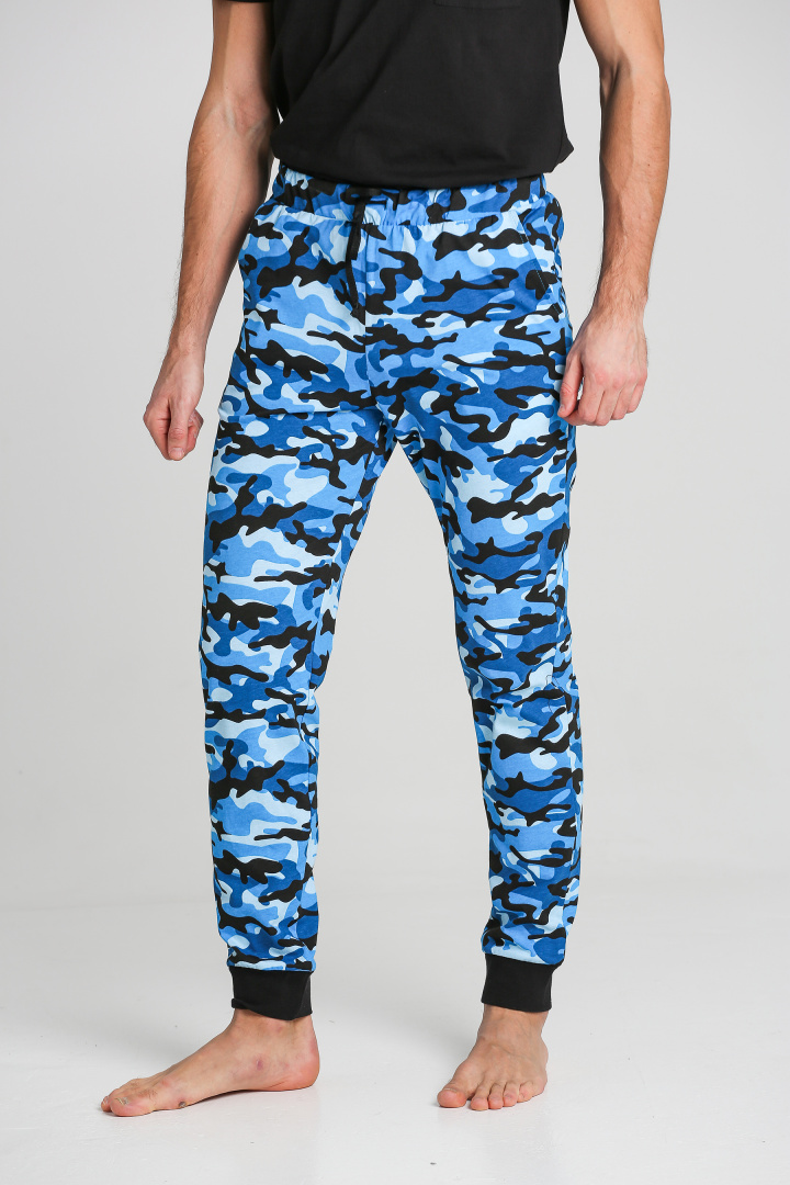 Длинные малообъёмные брюки из лёгкого хлопкового трикотажа на широкой манжете из эластичной ткани. Модель прямого покроя заужена книзу. Притачной пояс с широкой резинкой и шнуром. На передних половинках боковые карманы с наклонным входом.