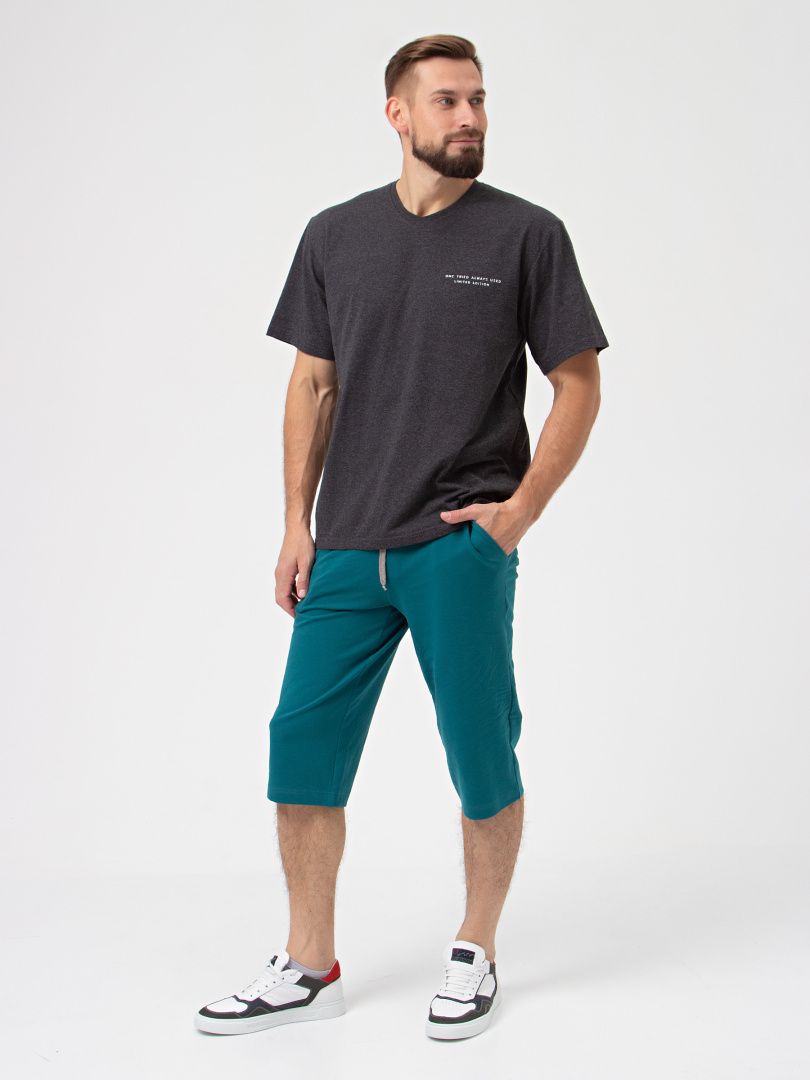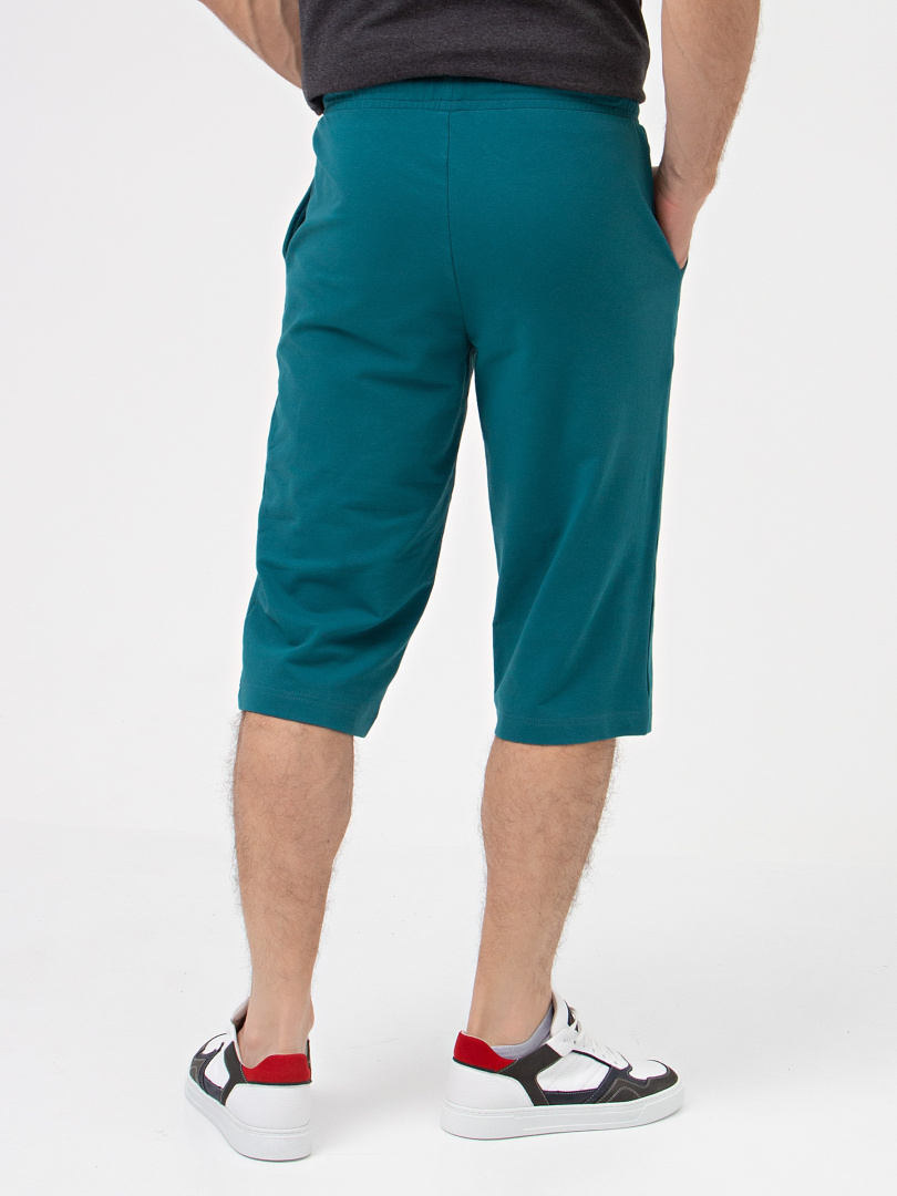 Бриджи выполнены из плотного трикотажного полотна - футер. Модель с удобной средней посадкой. Пояс на широкой резине со шнуром. На передних половинках - боковые карманы с наклонным входом. Бриджи декорированы печатью.