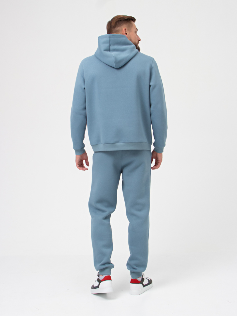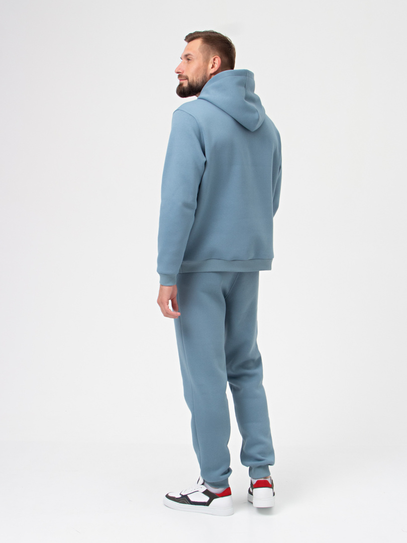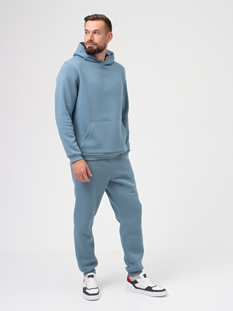 Длинные брюки на манжете из плотного трикотажа с начесом. Модель прямого покроя слегка заужена книзу. Притачной пояс с широкой резинкой и шнуром. На передних половинках боковые карманы с наклонным входом