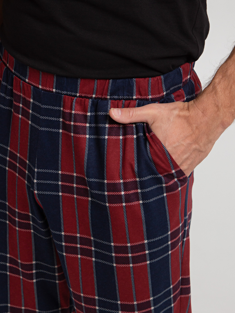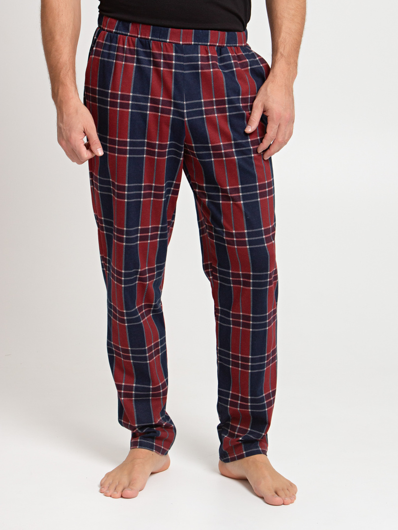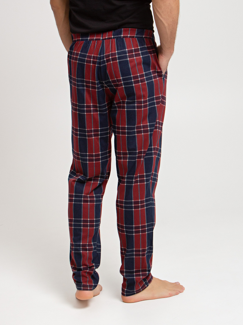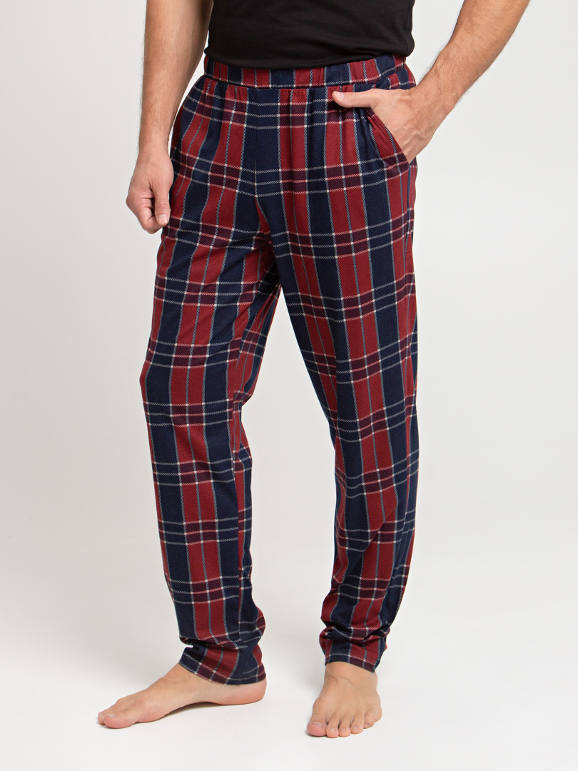 Длинные брюки из хлопкового трикотажа. Модель прямого покроя, слегка зауженная книзу. Притачной пояс с широкой резинкой. На передних половинках боковые карманы с наклонным входом.