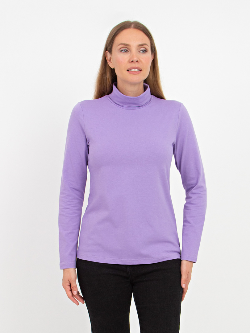 Джемпер средней длины, выполнен из мягкого эластичного трикотажа. Покрой полуприлегающий. Рукав втачной длинный. Воротник – стойка с отворотом.
