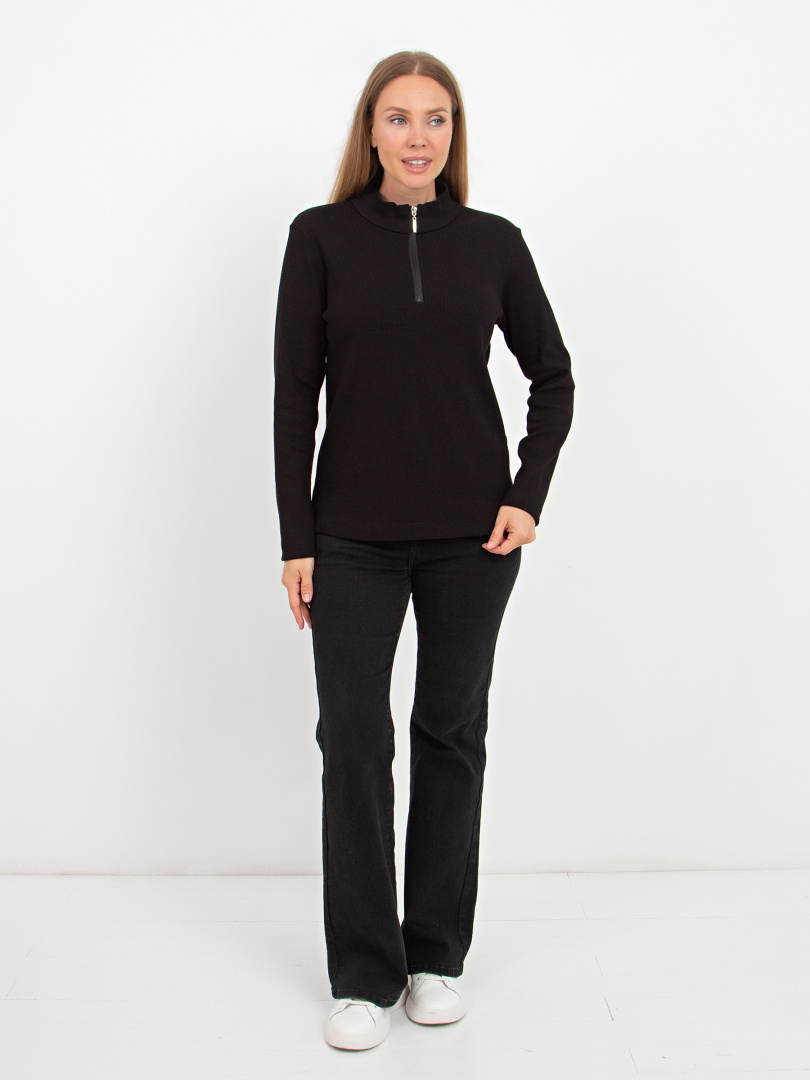 Джемпер прямого силуэта из эластичного трикотажа. Рукав длинный. По переду и воротнику – молния. Воротник-стойка.