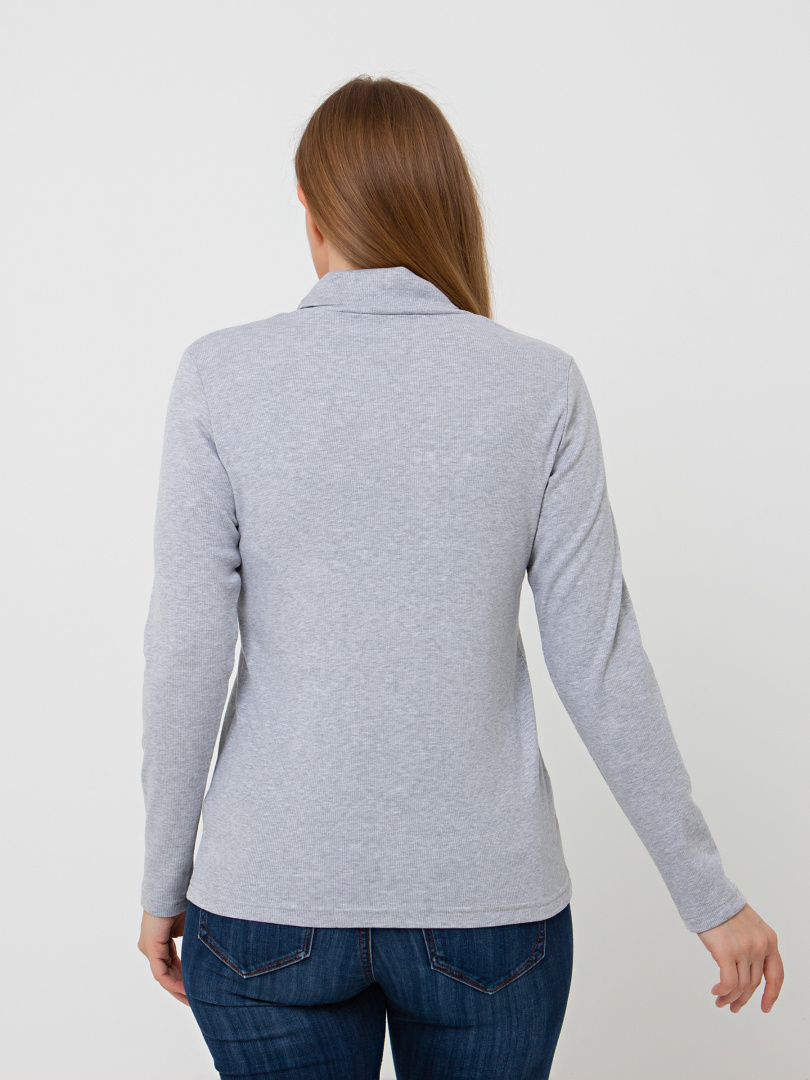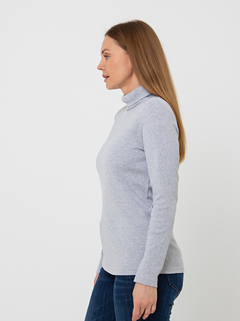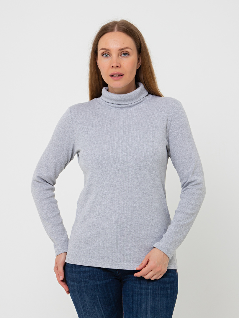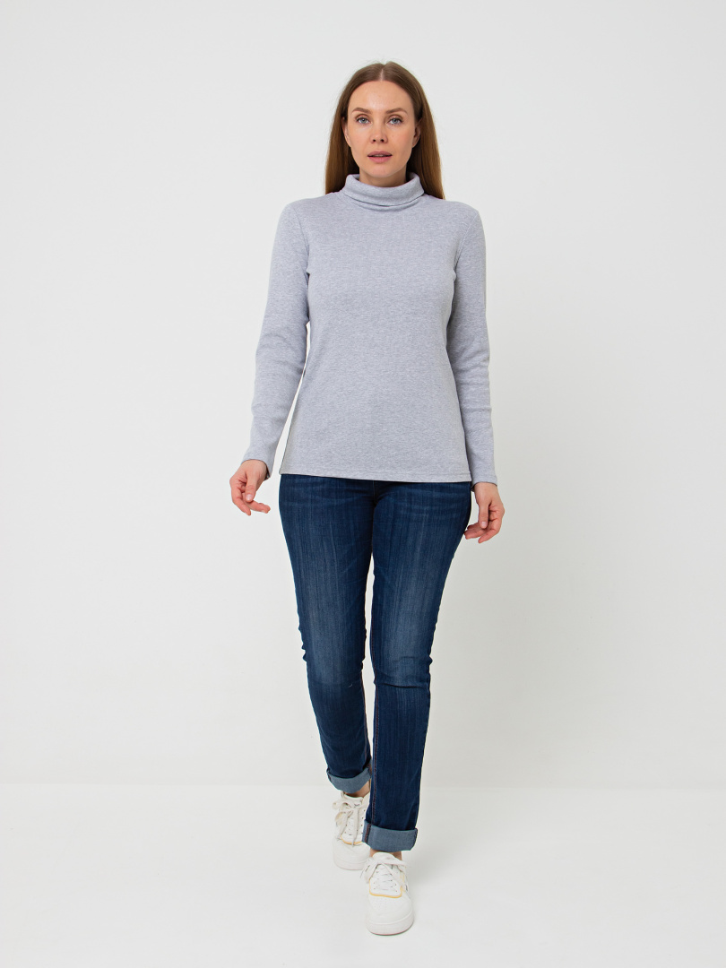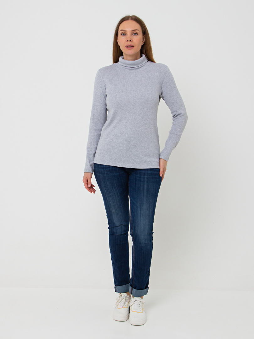 Джемпер прилегающего силуэта из эластичного трикотажа. Модель средней длины. Горловина имеет растяжимый воротник-стойку.
