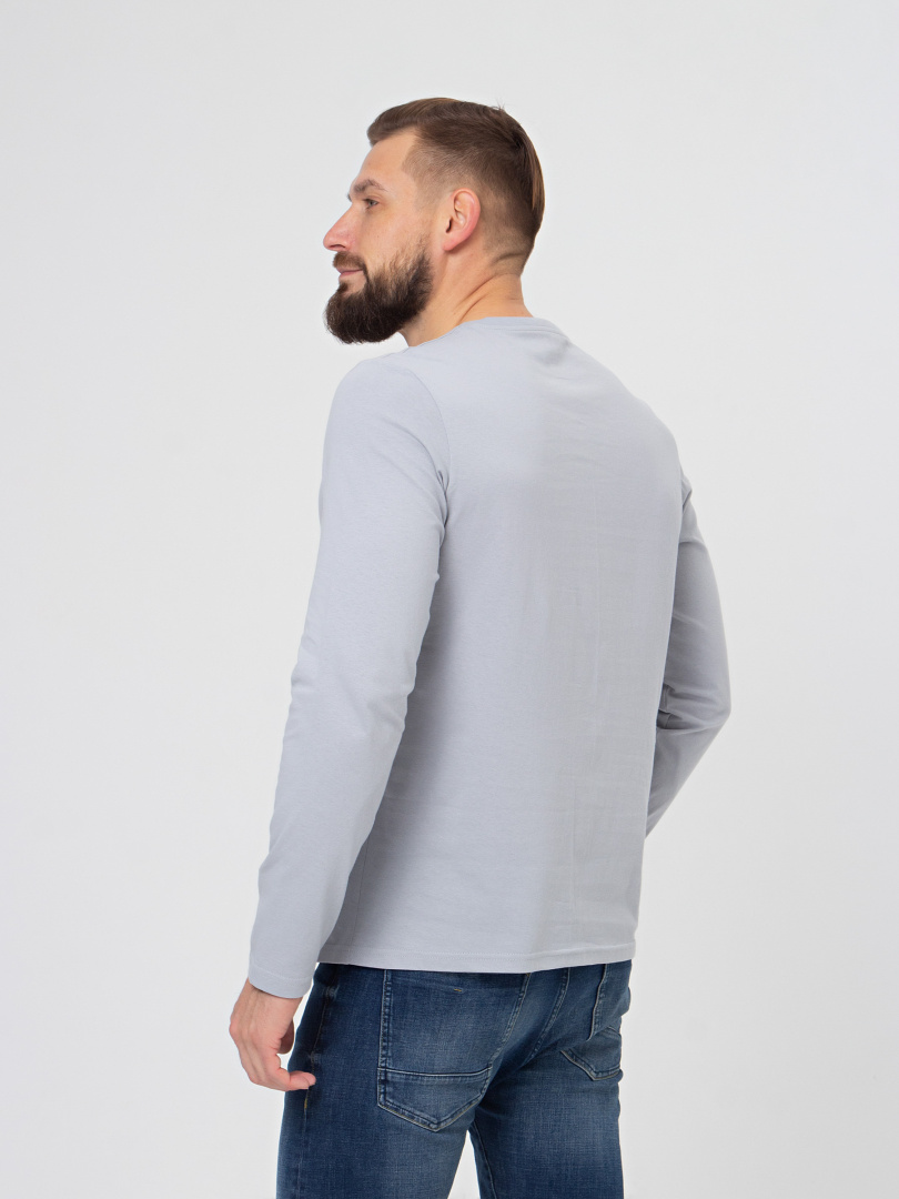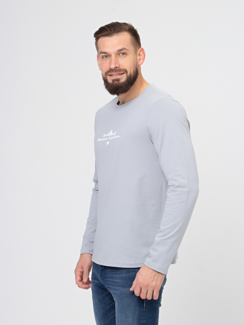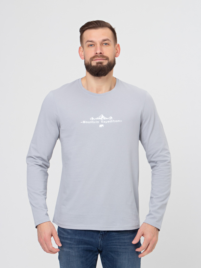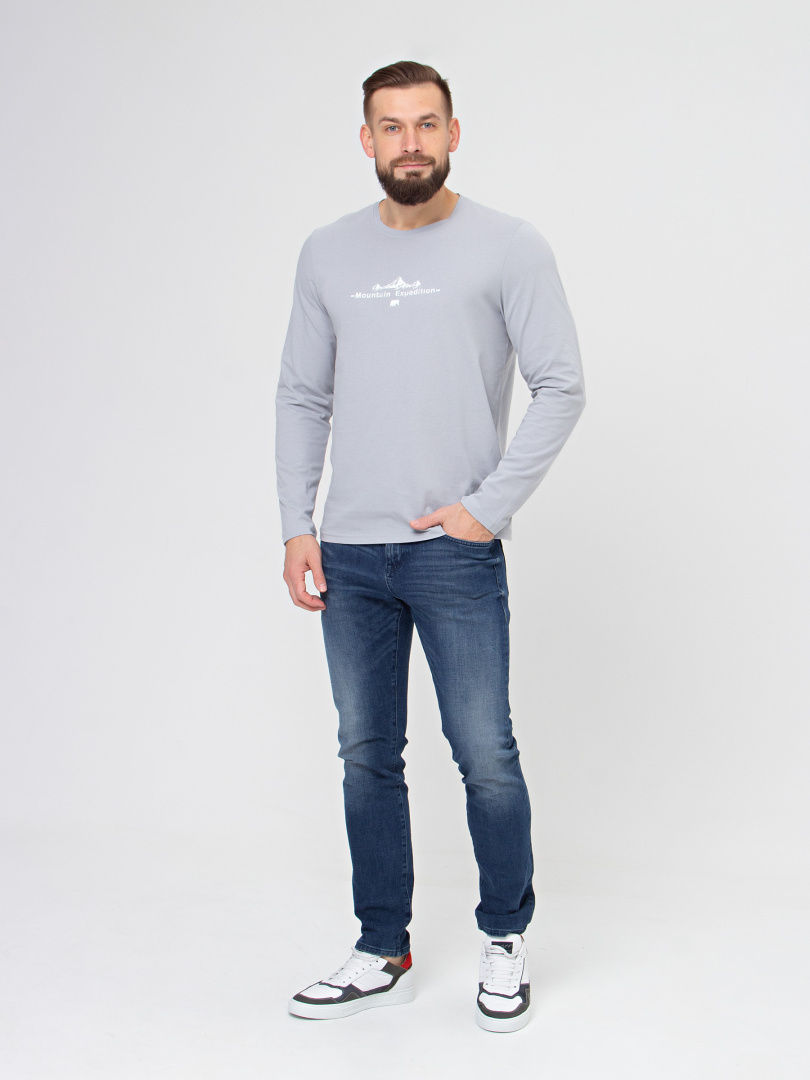 Мужской джемпер прямого силуэта с длинным рукавом. Перед декорирован контрастным принтом. Вырез круглый.