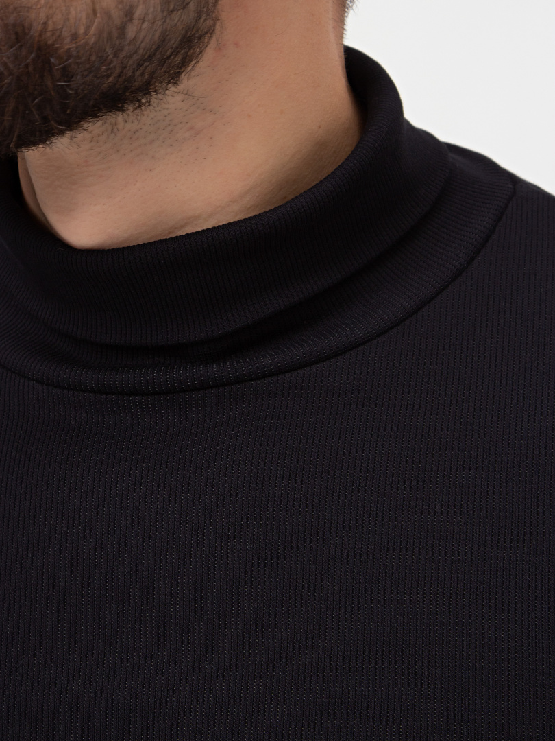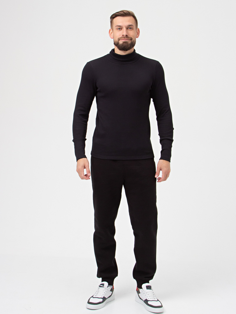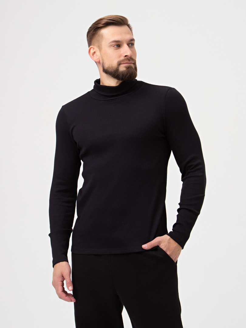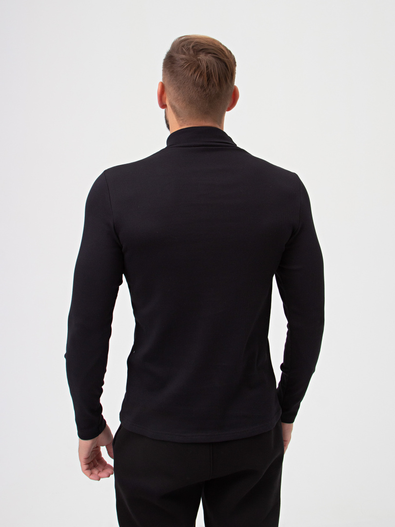 Мужской джемпер прямого силуэта из эластичного трикотажа с начесом. Модель с воротником-стойкой. Изделие с длинными рукавами.