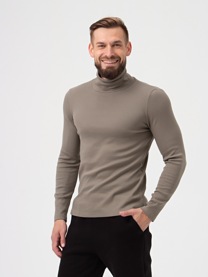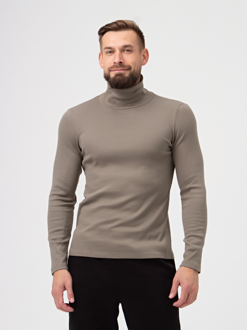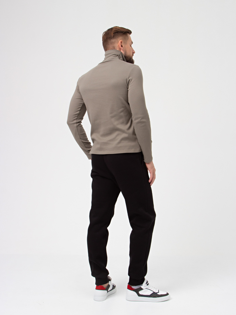 Мужской джемпер прямого силуэта из эластичного трикотажа с начесом. Модель с воротником-стойкой. Изделие с длинными рукавами.