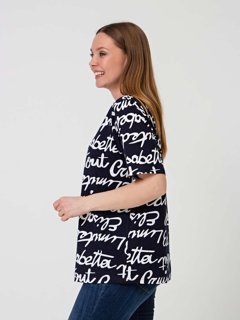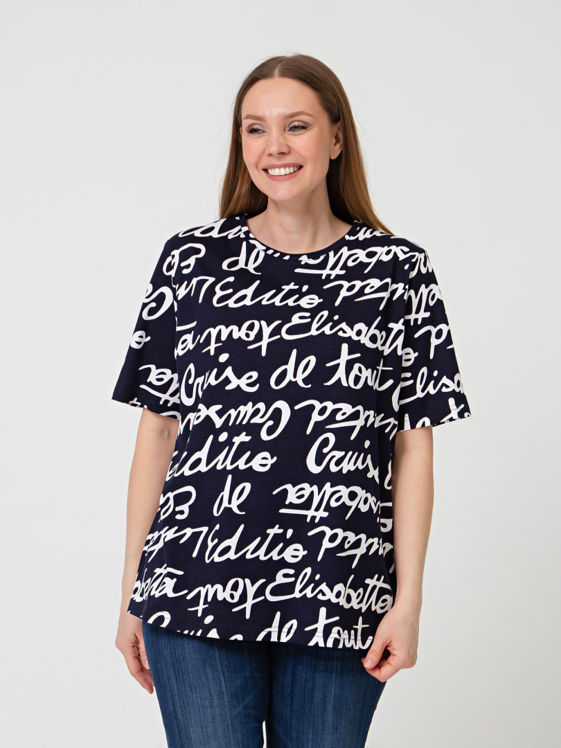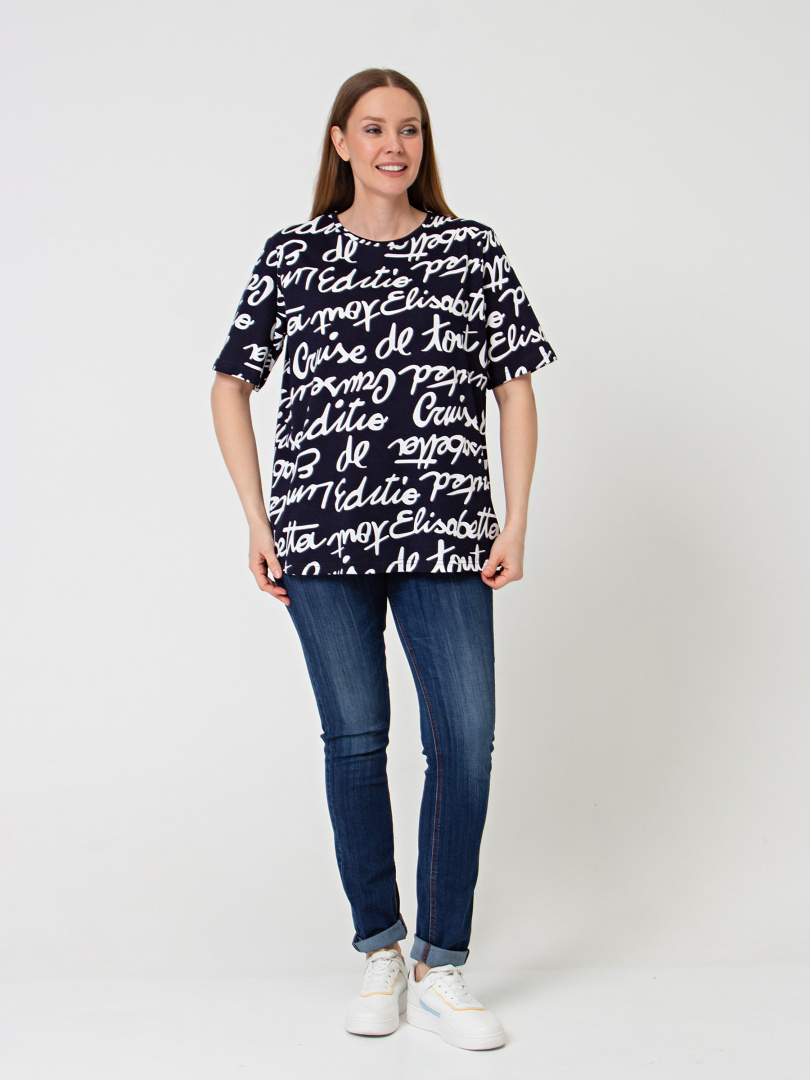 Блуза средней длины выполнена из хлопкового трикотажа. Покрой прямой объёмный. Рукава втачные прямые. Вырез круглый. Отличный вариант на каждый день.