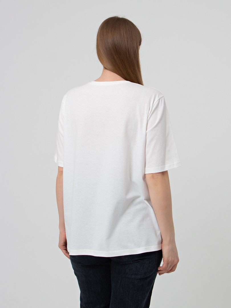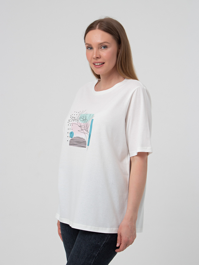 Блуза средней длины выполнена из хлопкового трикотажа. Покрой прямой объёмный. Рукава втачные прямые. Вырез круглый. Отличный вариант на каждый день.