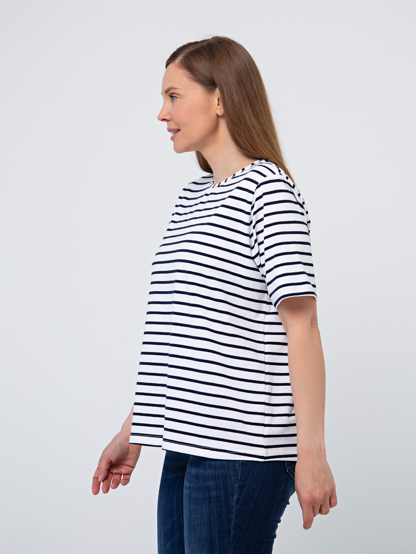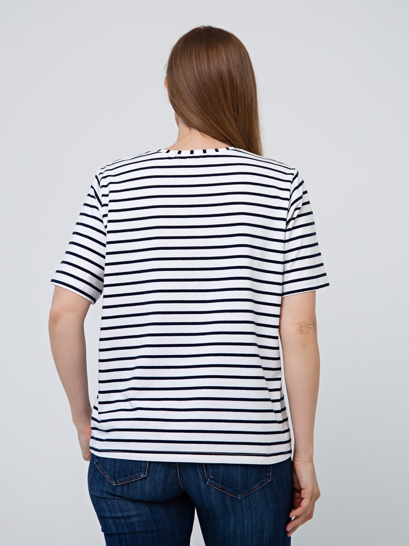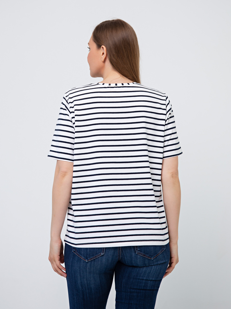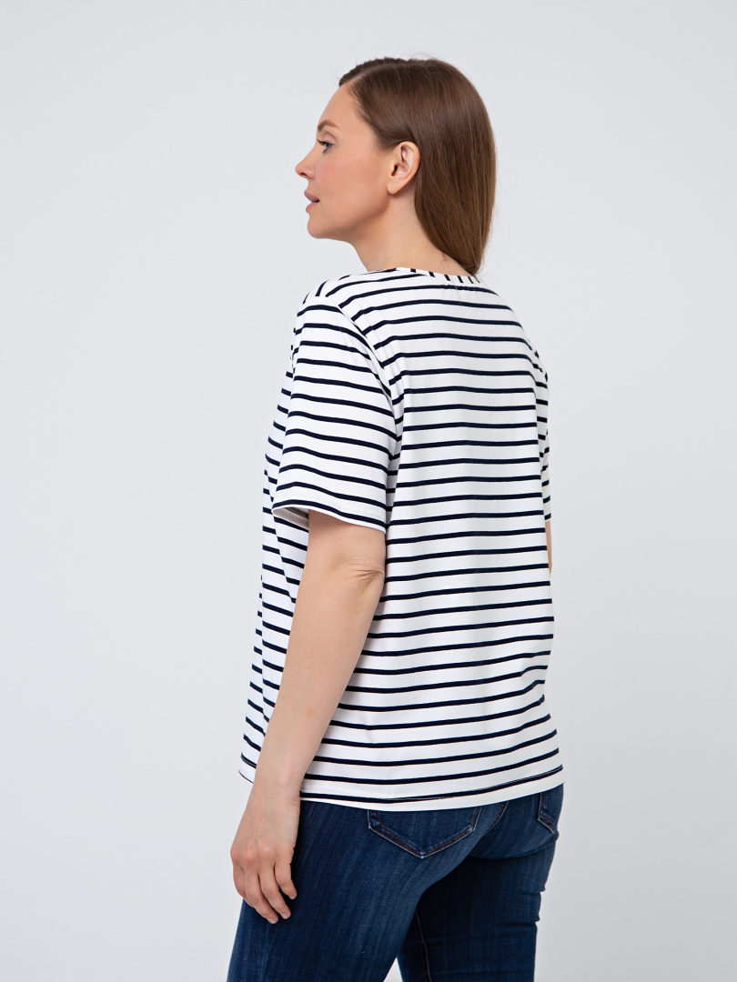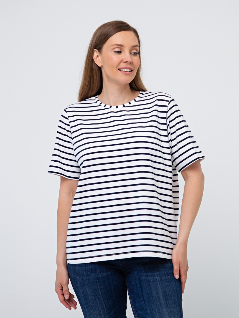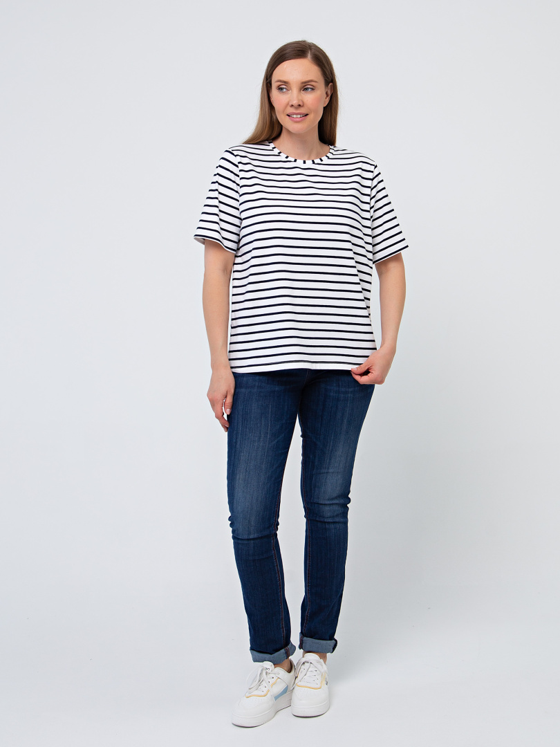Блуза средней длины выполнена из эластичного трикотажа. Покрой прямой объёмный. Рукава втачные прямые. Вырез круглый. Отличный вариант на каждый день.