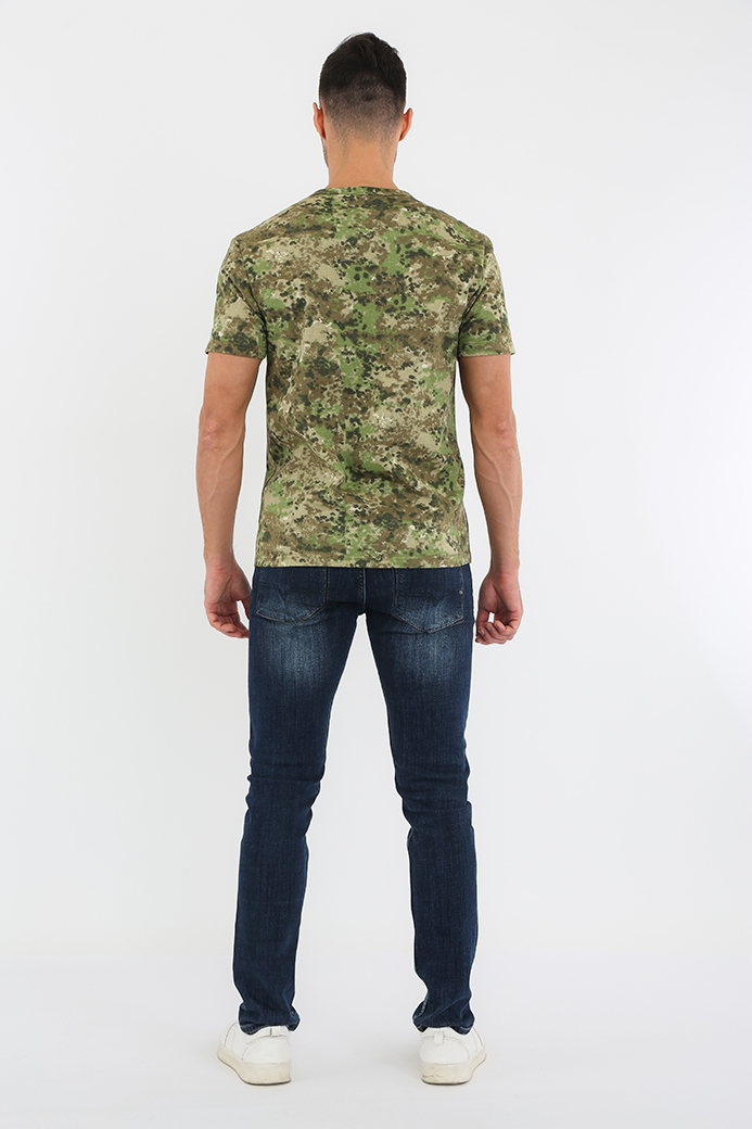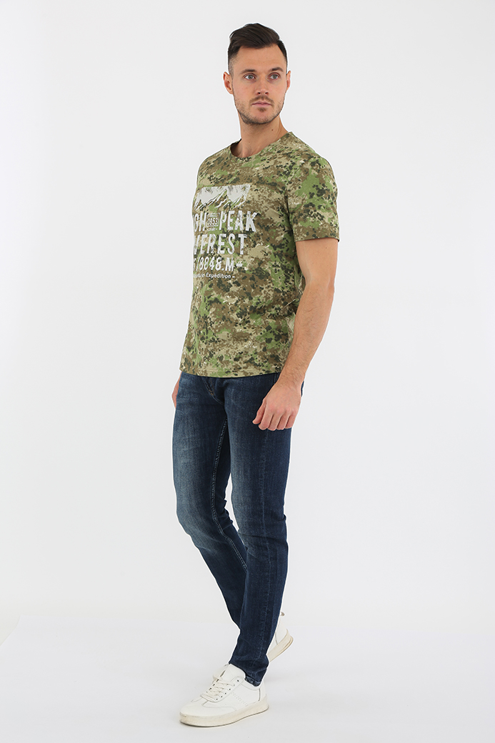 Футболка прямого покроя с круглым вырезом горловины. Базовая модель на каждый день. Перед декорирован принтом.