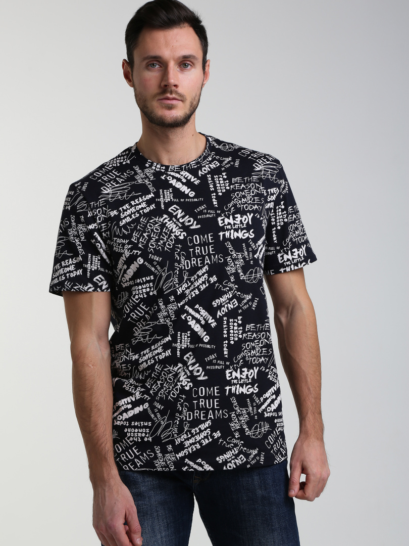 Мужская футболка из 100% хлопка прямого кроя. Выполнена из трикотажного полотна с рисунком.