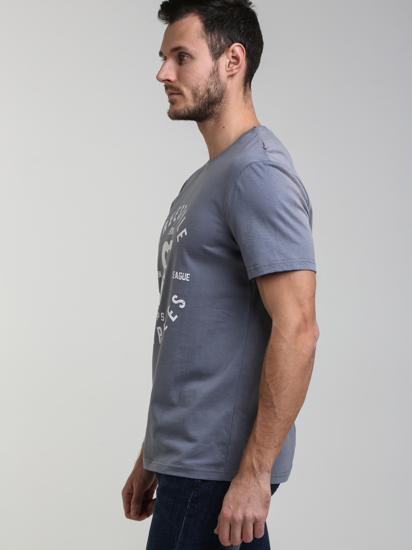 Футболка прямого покроя с круглым вырезом. Модель дополнена декоративной печатью. Большие размеры.