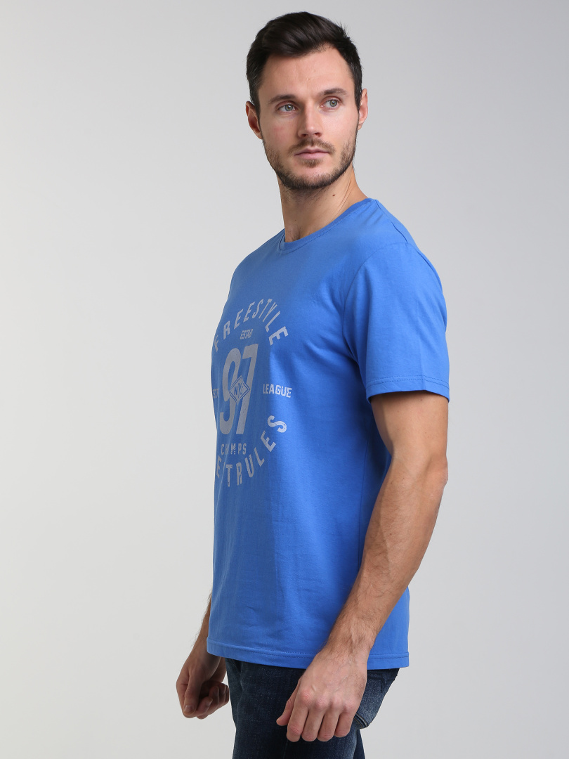 Футболка прямого покроя с круглым вырезом. Модель дополнена декоративной печатью. Большие размеры.