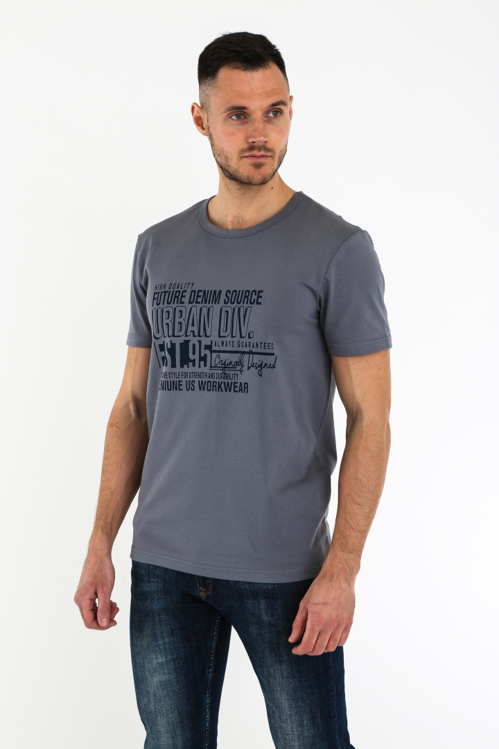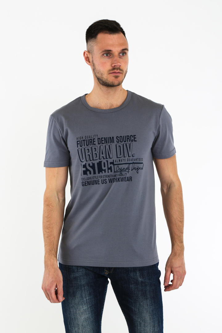 Футболка прямого покроя с круглым вырезом горловины. Базовая модель на каждый день. Перед декорирован принтом.