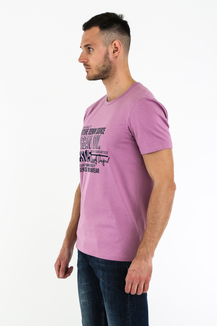 Футболка прямого покроя с круглым вырезом горловины. Базовая модель на каждый день. Перед декорирован принтом.