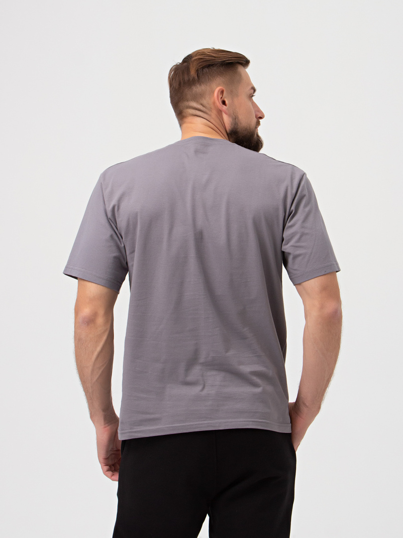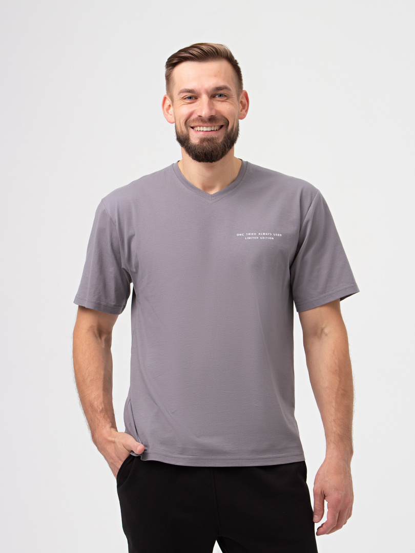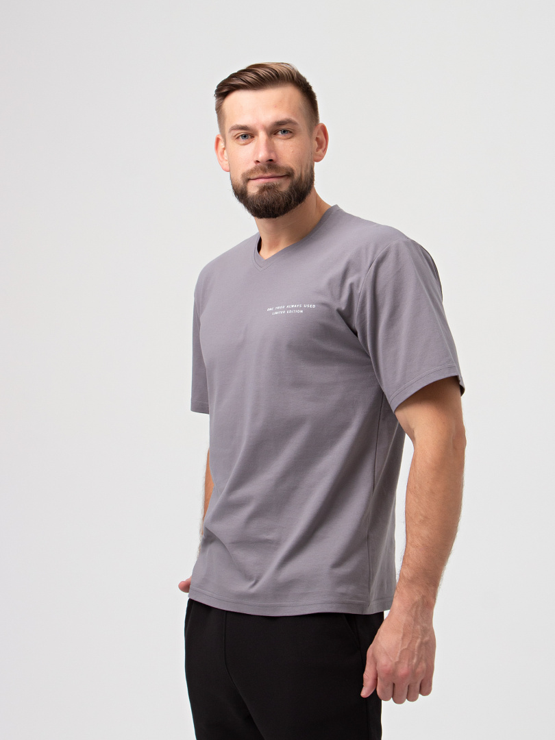 Свободная футболка прямого покроя с V-образным вырезом горловины. Модель выполнена из хлопкового трикотажа. Большие размеры.