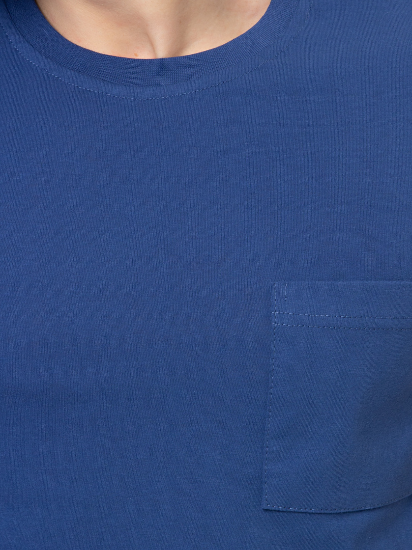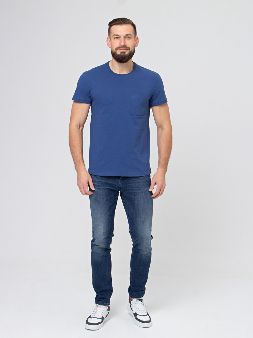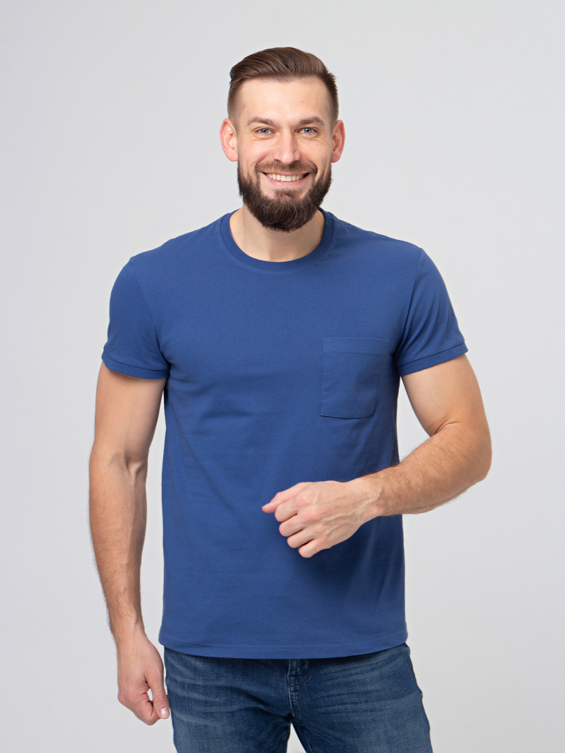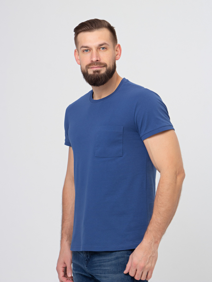 Футболка прямого покроя с круглым вырезом горловины. Базовая модель на каждый день. Модель дополнена нагрудным карманом. По низу рукава - манжеты.