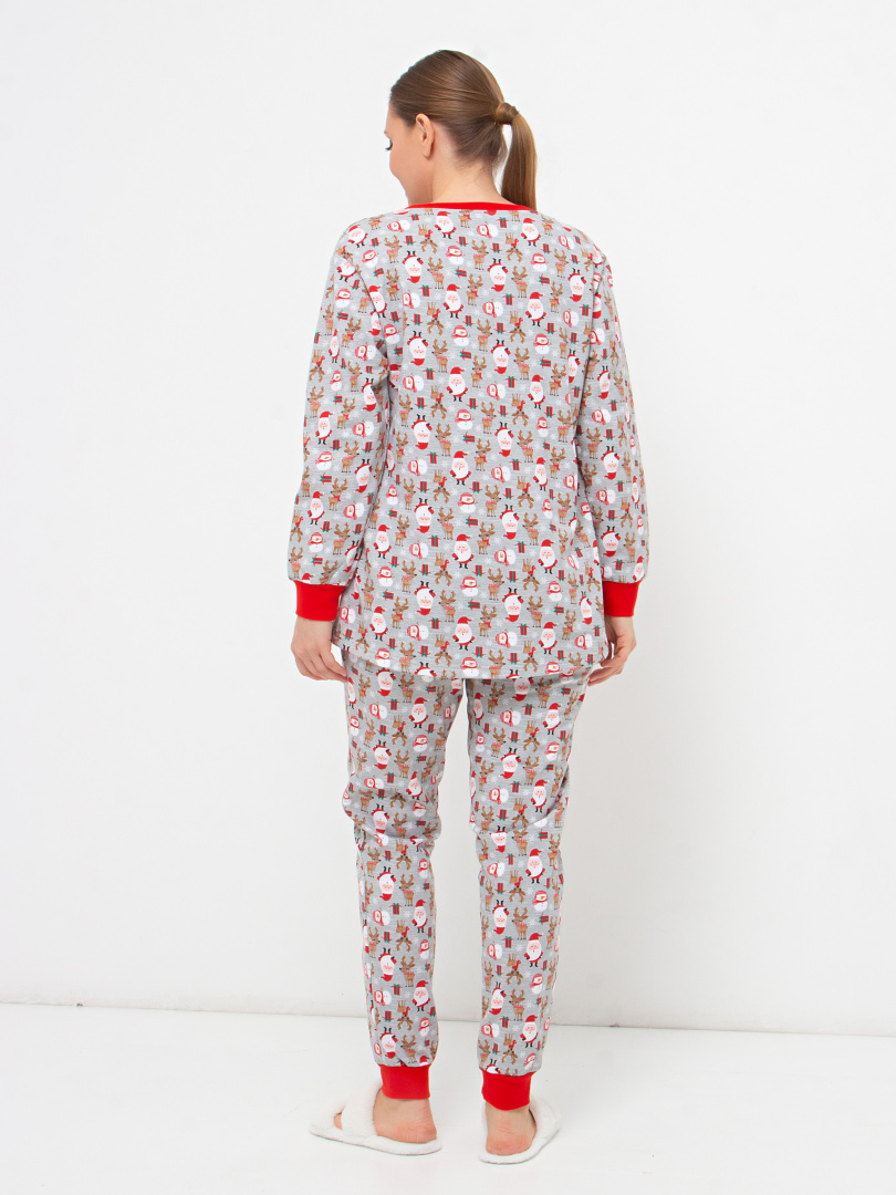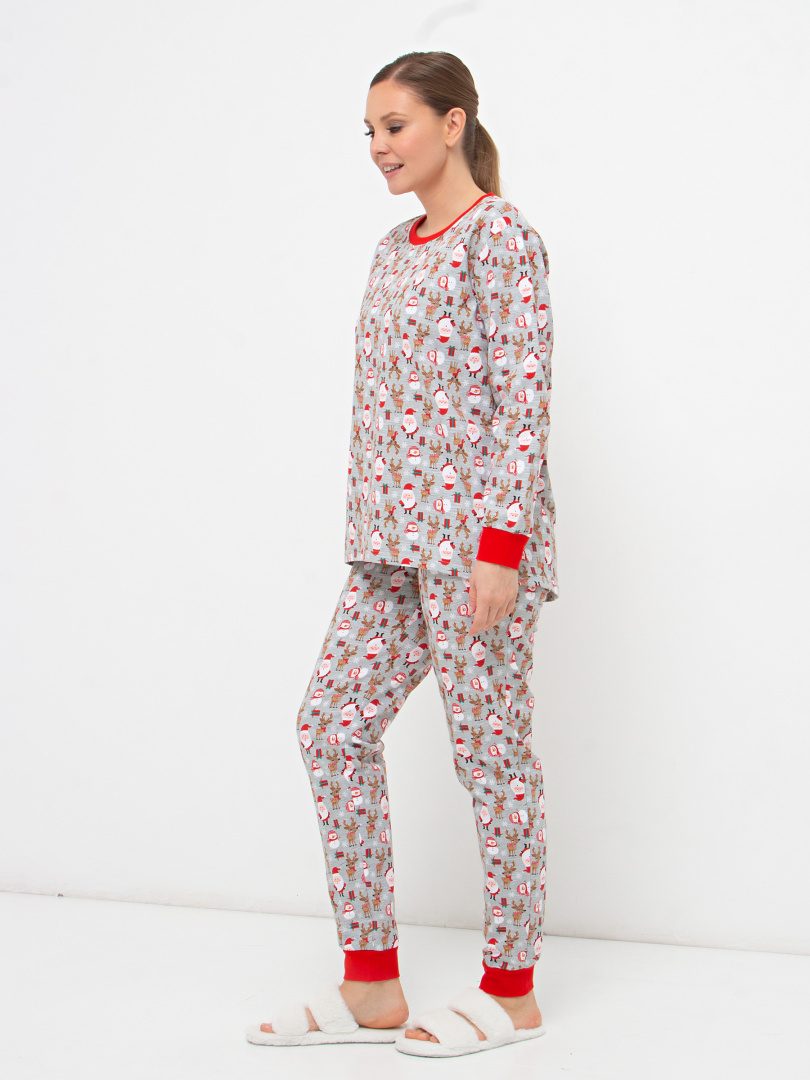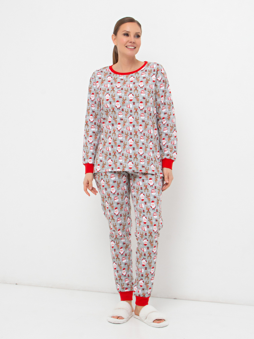 Женский трикотажный комплект из джемпера и брюк. Комплект выполнен из плотного трикотажа с начесом. Джемпер с круглой горловиной и длинным рукавом на эластичном манжете. Низ джемпера имеет удлинение по спинке. Длинные брюки прямого силуэта с манжетами. Притачной пояс брюк с широкой резиной.
