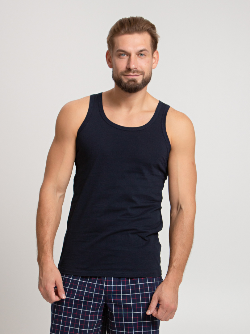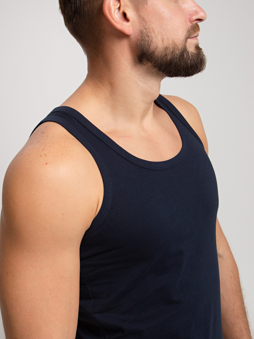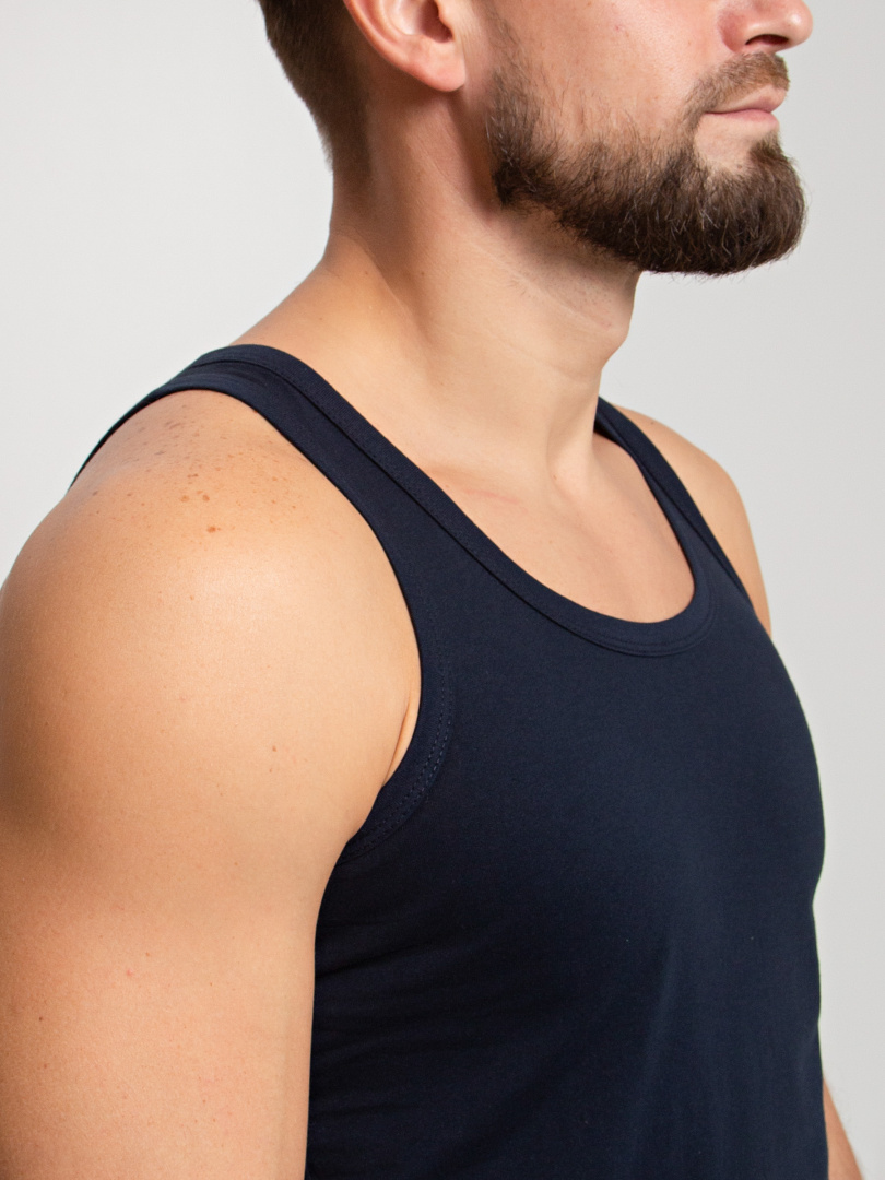 Классическая мужская майка с круглым вырезом горловины. Модель для повседневной носки из натурального дышащего полотна.
