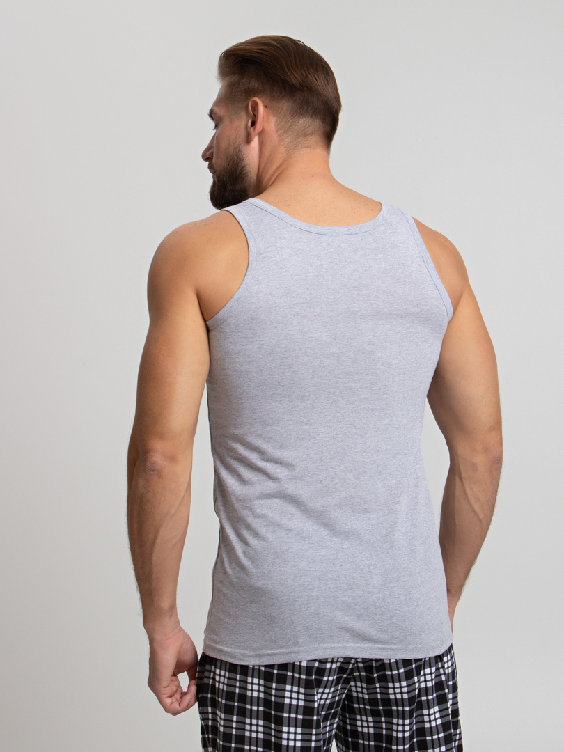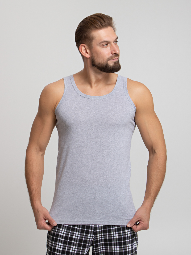 Классическая мужская майка с круглым вырезом горловины. Модель для повседневной носки из натурального дышащего полотна.