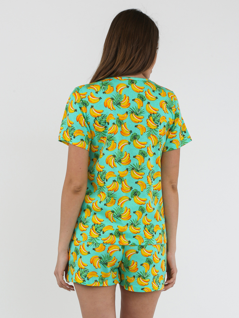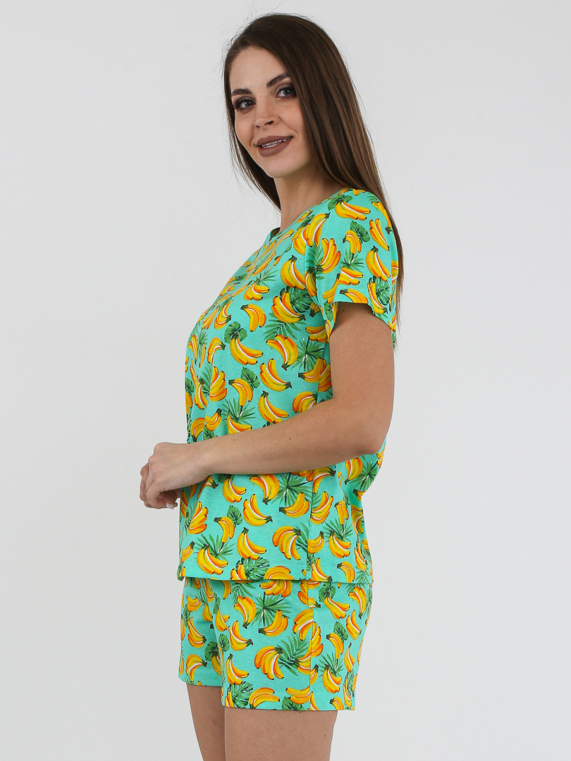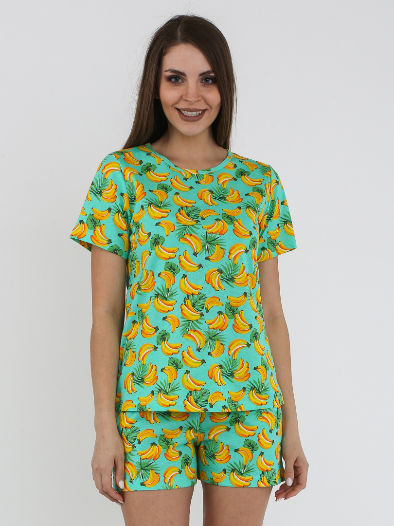 Женский комплект из футболки и шорт. Футболка прямого силуэта с коротким рукавом. Вырез круглый. Укороченные шорты свободного кроя. Шорты с удобной средней посадкой.