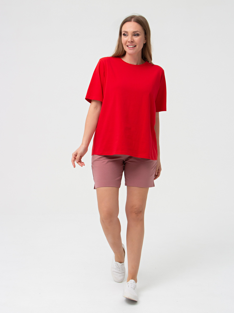 Шорты средней длины, выполненные из плотного трикотажного полотна - футер. Модель с удобной средней посадкой. Пояс на широкой резине со шнуром. На передних половинках боковые карманы с наклонным входом. По боковым швам – небольшие разрезы.