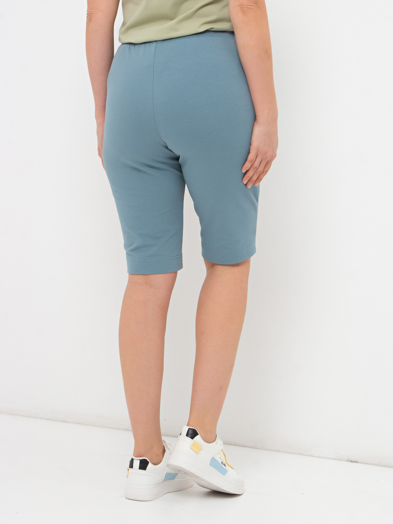 Шорты удлинённые, выполненные из плотного трикотажного полотна - футер. Модель с удобной средней посадкой. Пояс на широкой резине. На передних половинках боковые карманы. По боковым швам – небольшие разрезы.