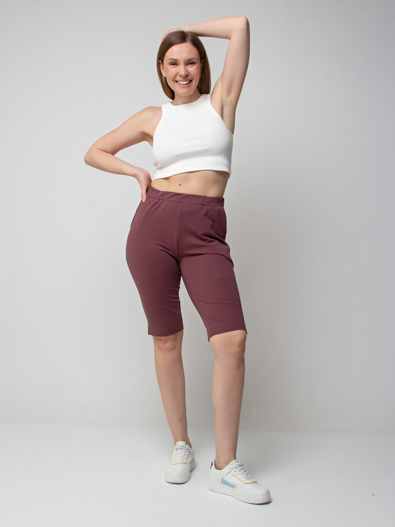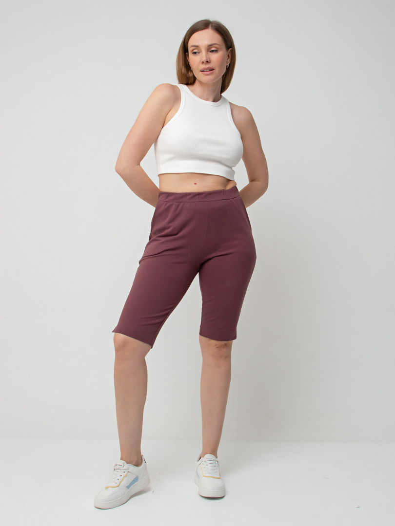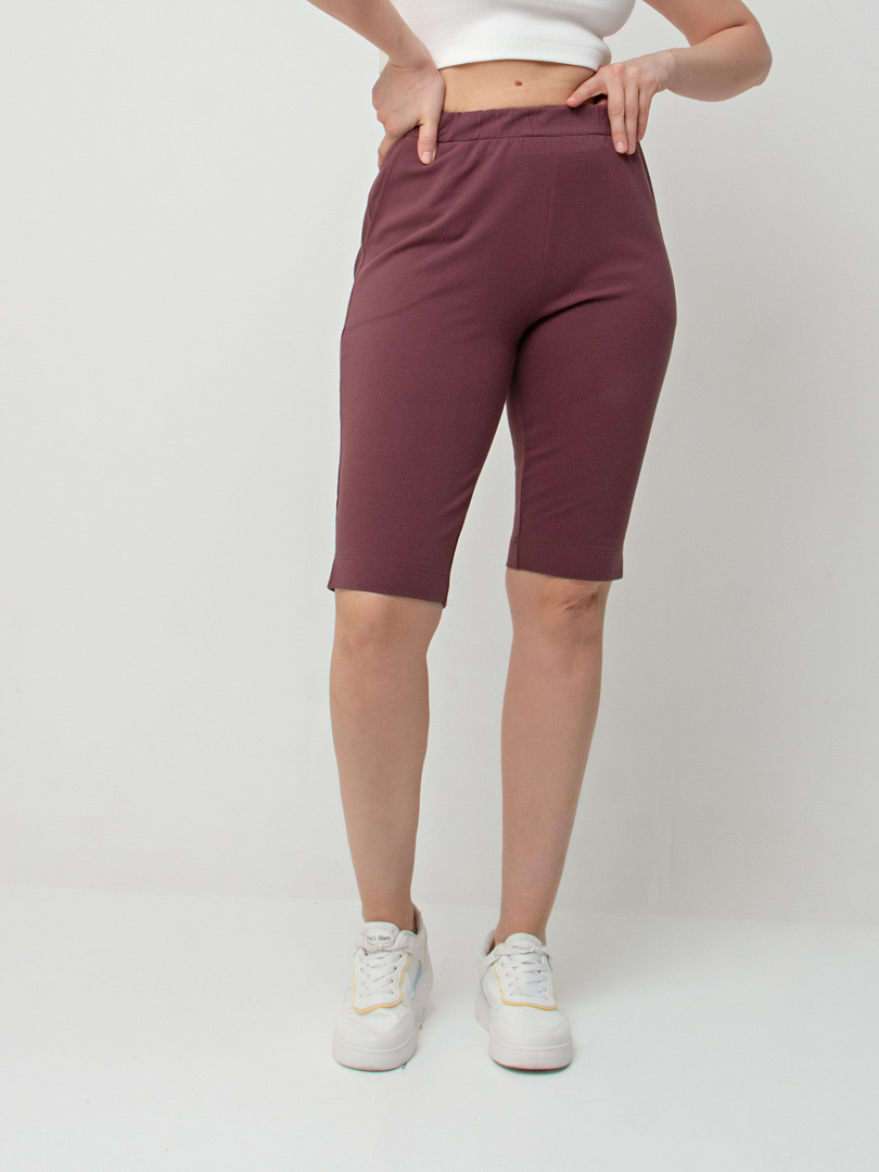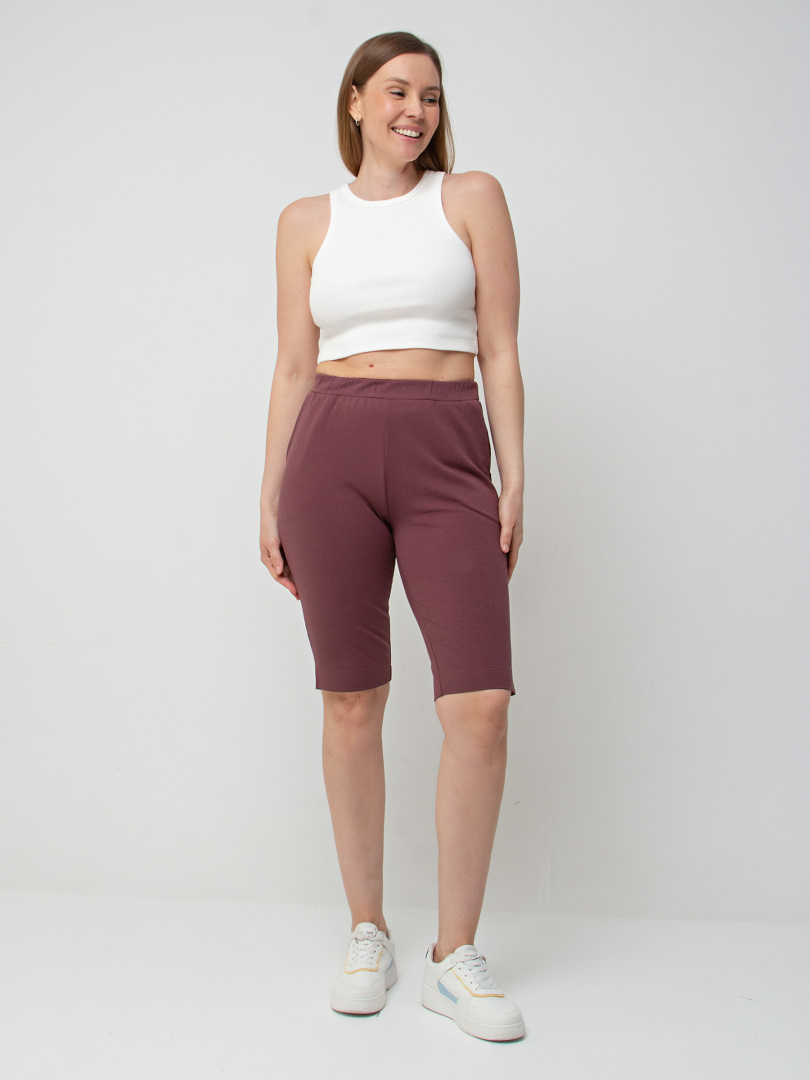 Шорты удлинённые, выполненные из плотного трикотажного полотна - футер. Модель с удобной средней посадкой. Пояс на широкой резине. На передних половинках боковые карманы. По боковым швам – небольшие разрезы.